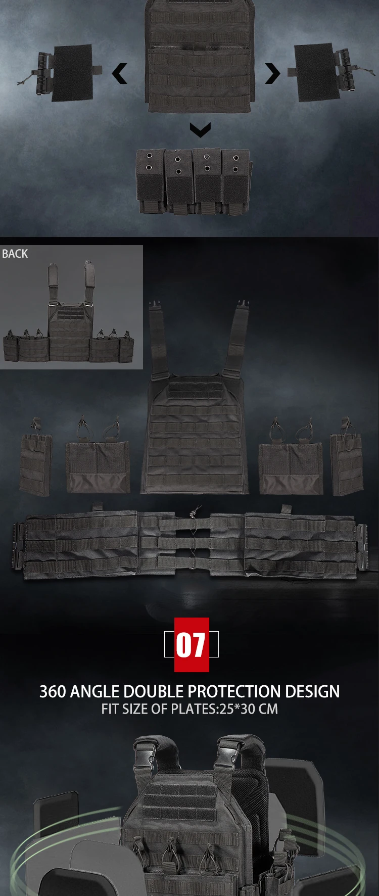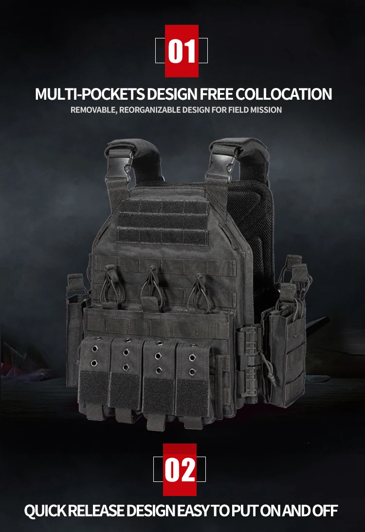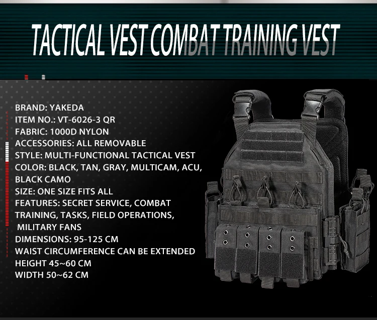 YAKEDA-Chaleco táctico portador de placa de nailon 1000D, chaleco MODULAR ajustable protector para caza al aire libre, accesorios de combate Airsoft