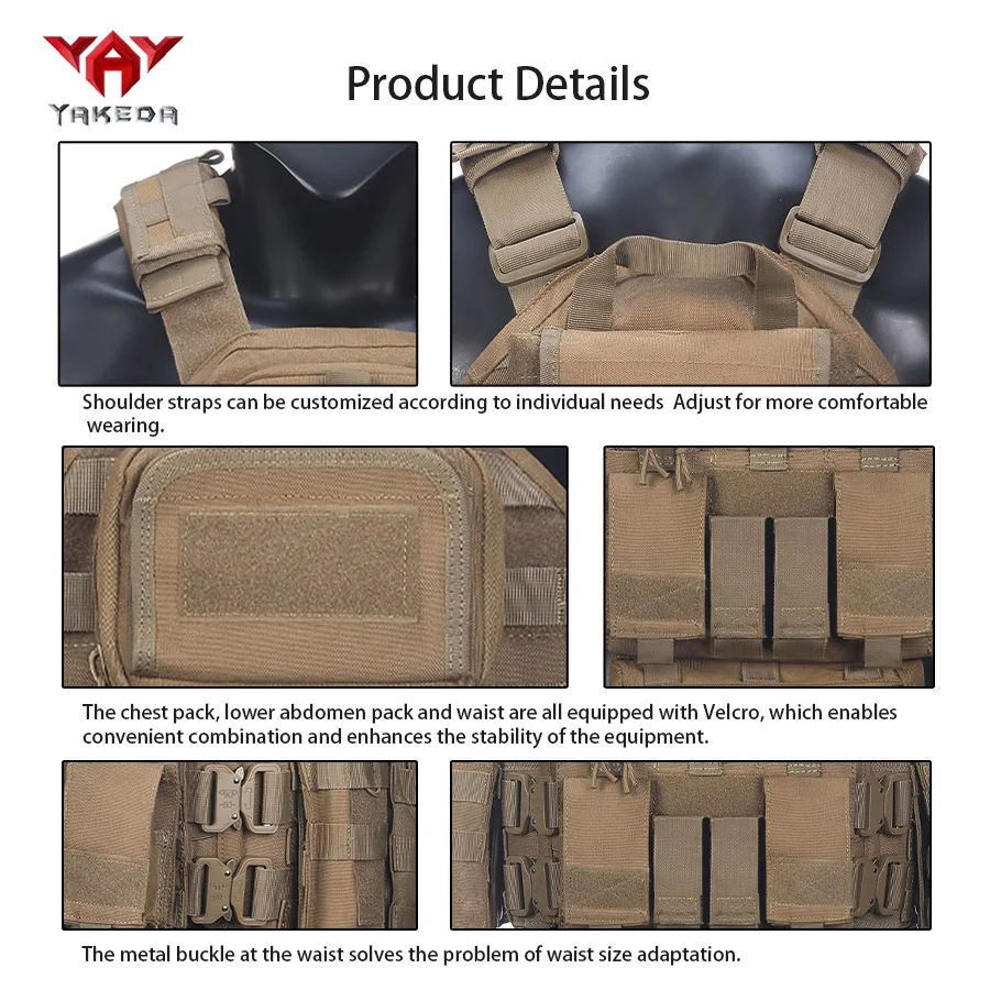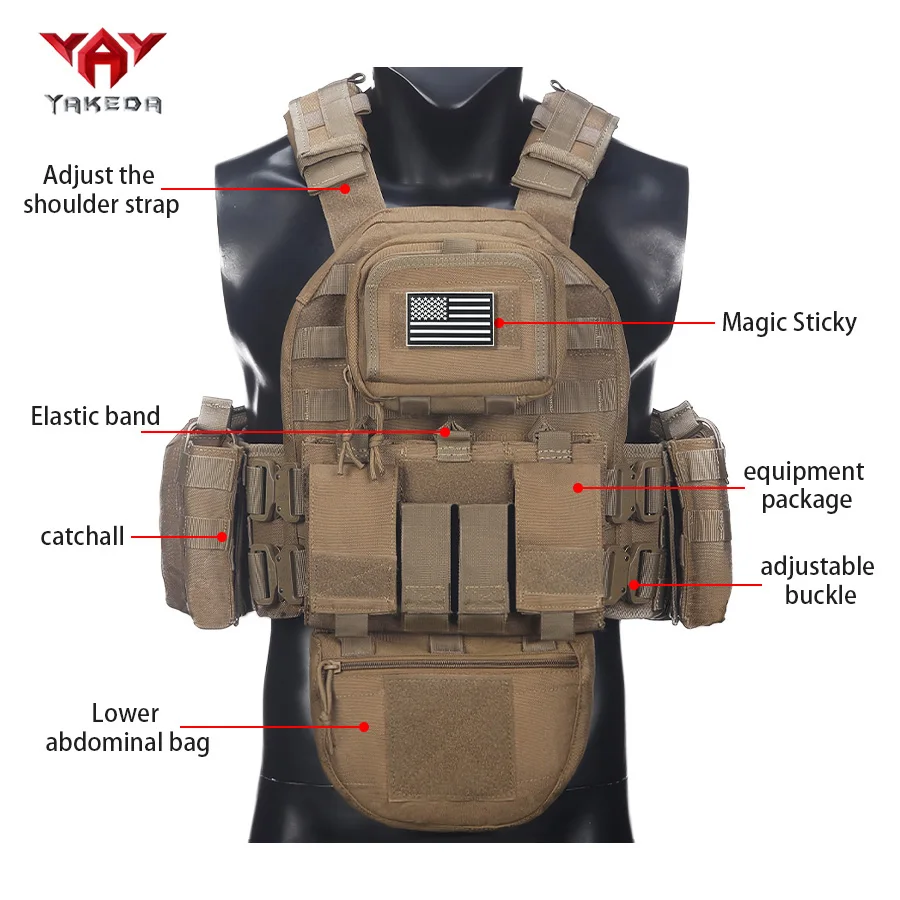 YAKEDA equipo multifuncional al aire libre bolsa de pecho chaleco de caza con bolsa de mapas, bolsa de archivo, bolsa de equipo cuádruple, etc.