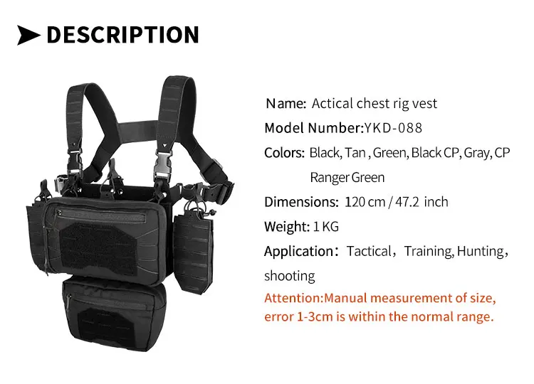 YAKEDA MC Camo Molle aparejo de pecho chasis de lucha cartel gancho bucle Airsoft revista bolsa placa táctica portador chaleco equipo
