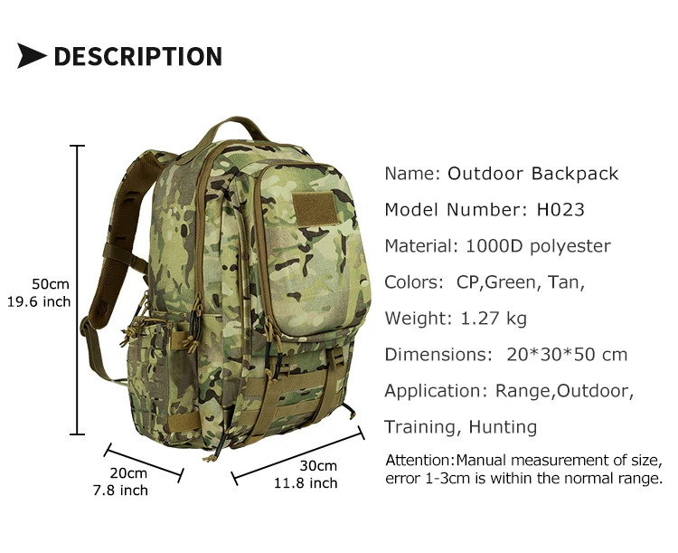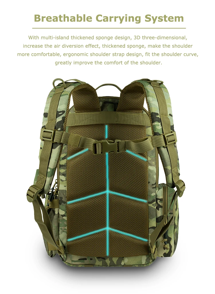 YAKEDA-Mochila deportiva MOLLE para hombre, morral táctico impermeable, ligero y pesado, 30L, 1000D, color negro