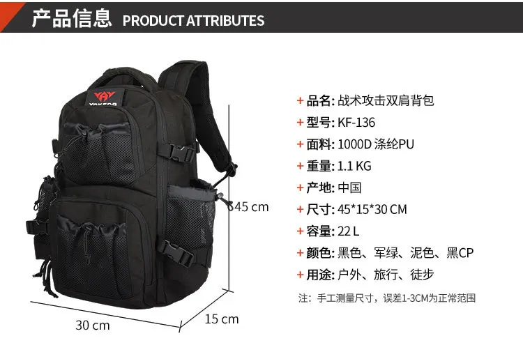 Yakeda-mochila militar impermeable de nailon para hombre, morral táctico de 22L, 1000D, para exteriores, Camping, caza, MOLLE