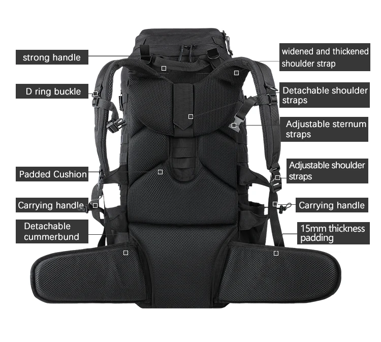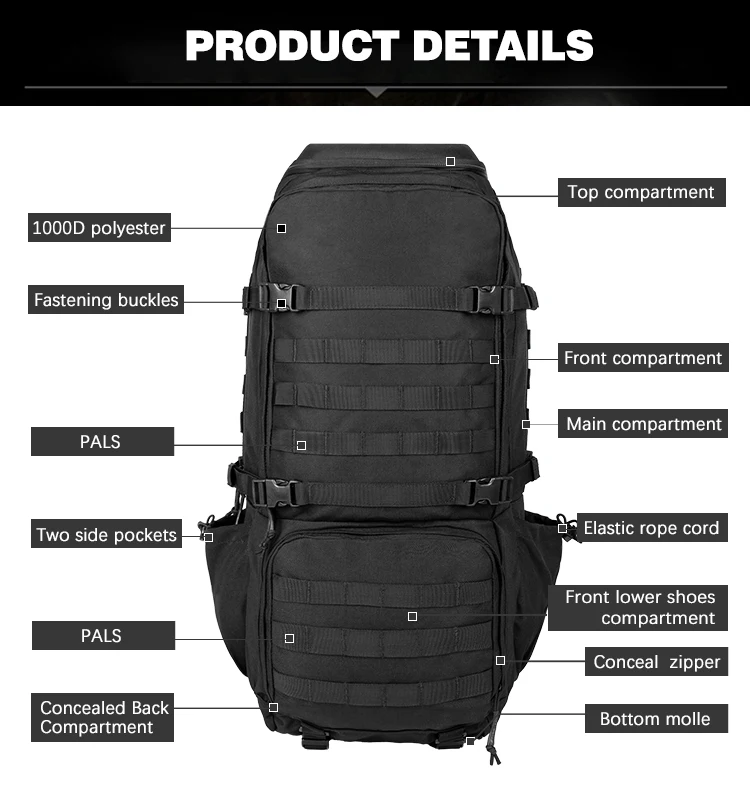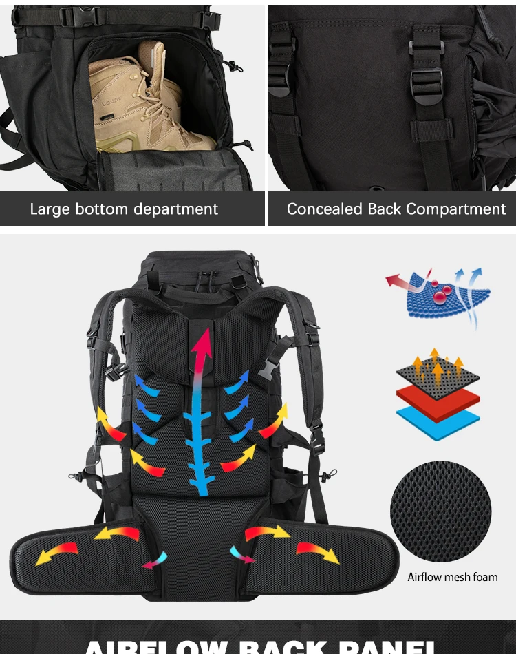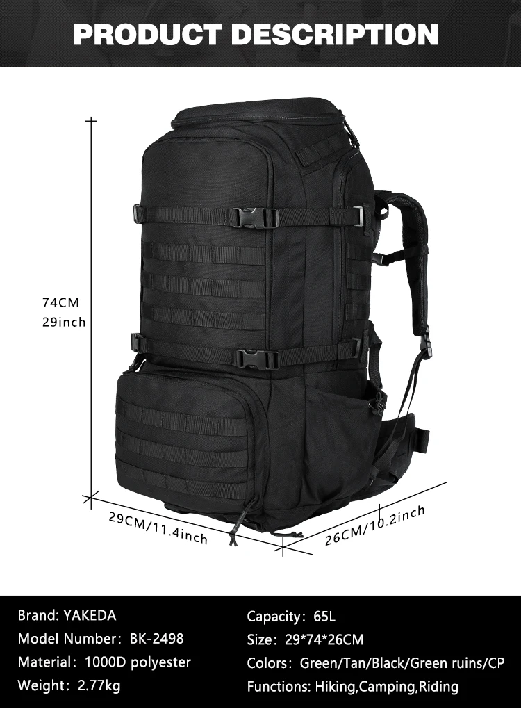 YAKEDA-mochila táctica de gran capacidad para deportes al aire libre, Bolsa duradera y transpirable para acampar, senderismo y montaña, 65L, 1000D