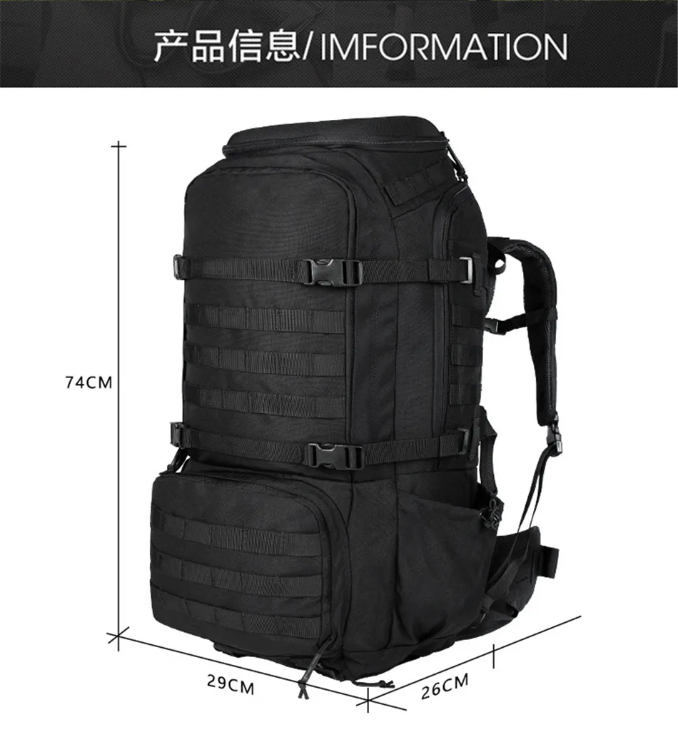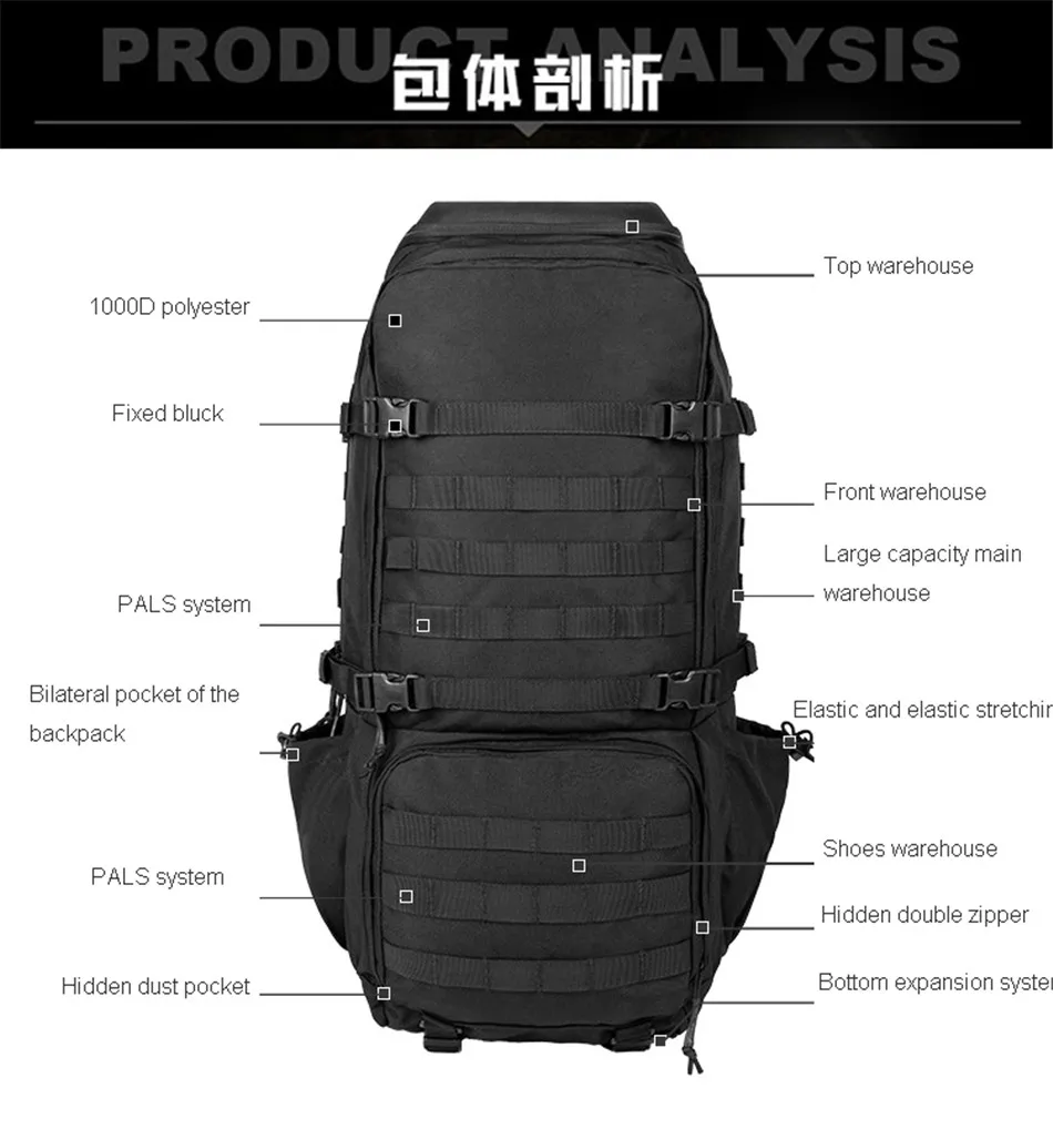 YAKEDA-mochila táctica de gran capacidad, paquete de viaje al aire libre, 1000D, duradera y transpirable, para acampar, senderismo y montaña, 65L