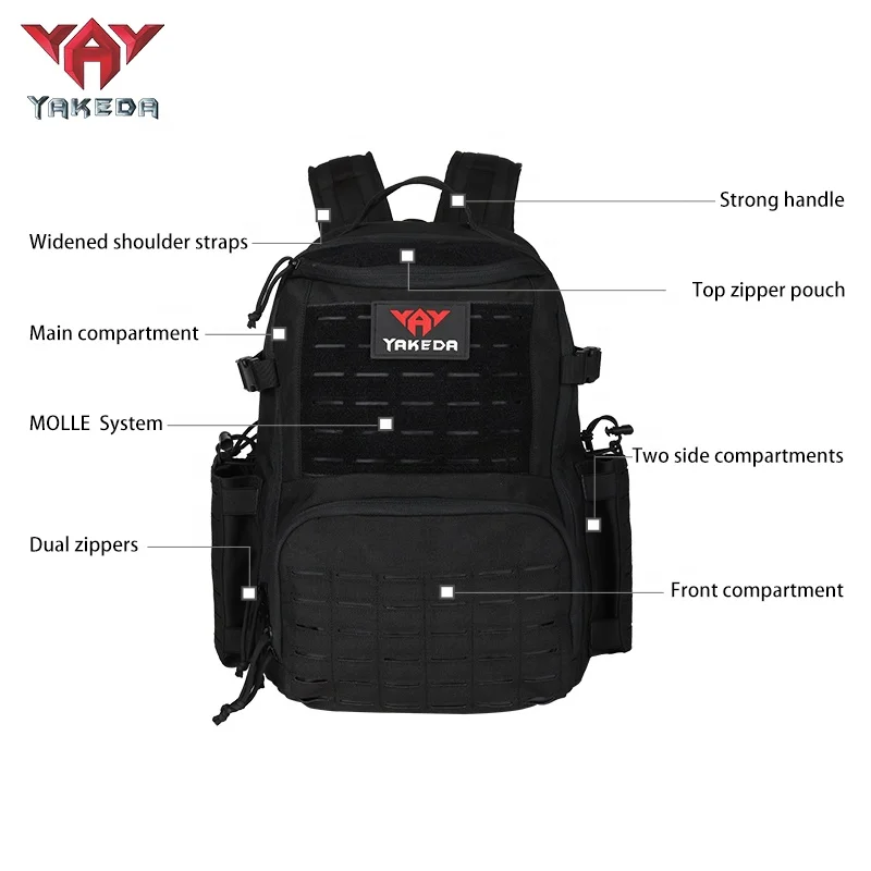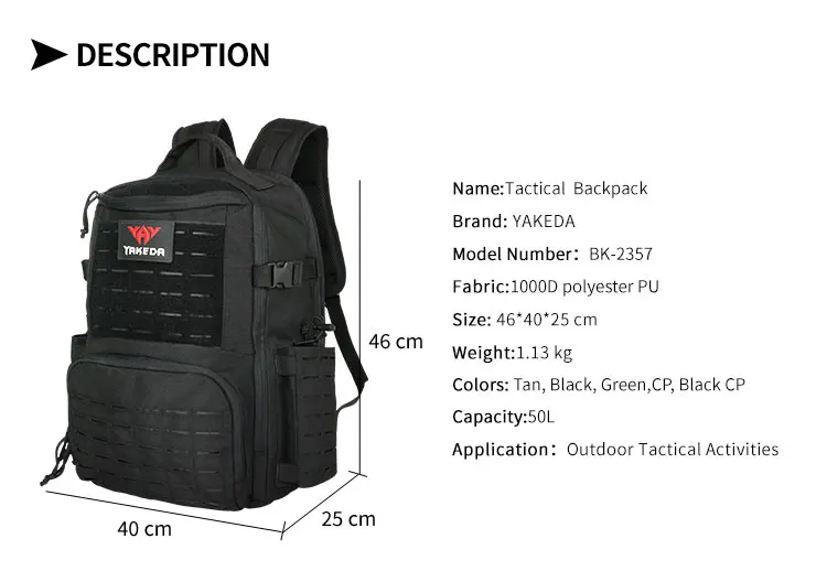 Mochila táctica Yakeda senderismo al aire libre Camping mochila de viaje MOLLE Multi 50L bolsa 1000D Nylon impermeable antifricción