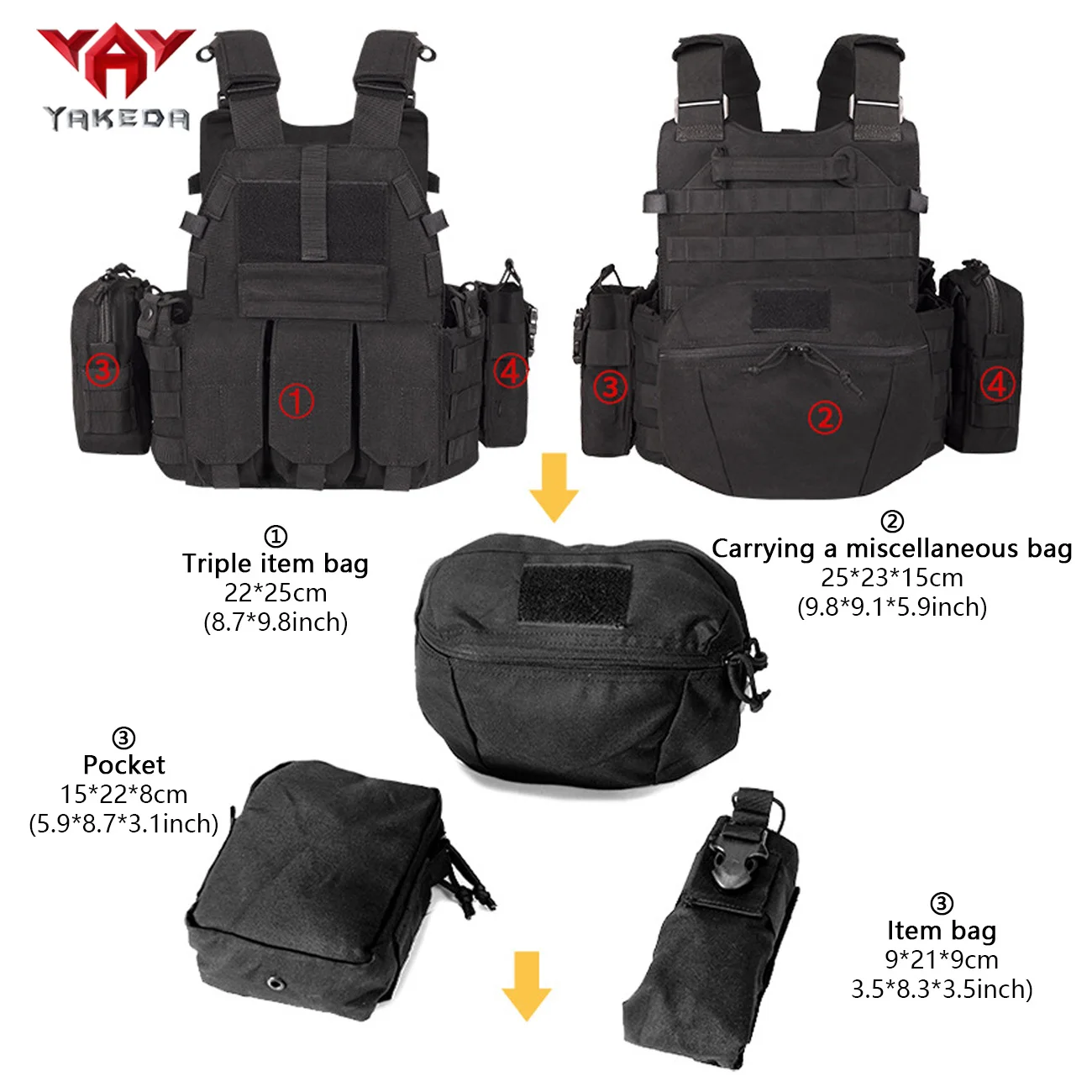 YAKEDA MOLLE Chaleco de adiestramiento al aire libre ligero Chaleco multifuncional
