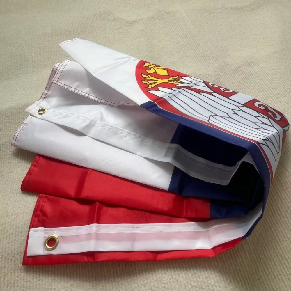 Bandera Serbian Bandera de poliéster 5*3 pies de alta calidad colgante y volador 90x150 cm decoración de la bandera de la República de Serbia