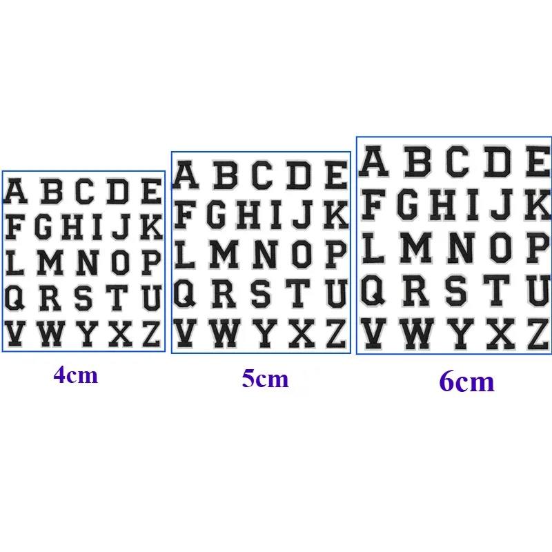 A ~ Z letras del alfabeto inglés negro con apliques bordados de borde blanco, parches termoadhesivos para ropa de tela