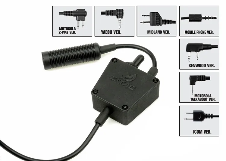 Z Tac e-switch PTT auriculares militares de caza para Baofeng Radio Kenwood, 7 enchufes para caza táctica, accesorios para auriculares Z122