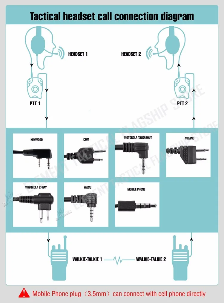 1. Cable de auriculares tipo Peltor y PTT.