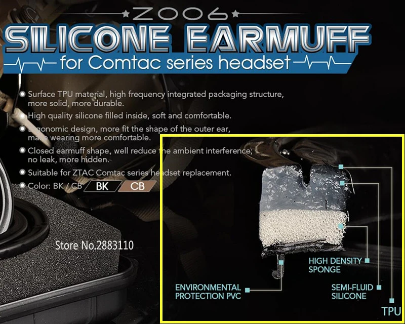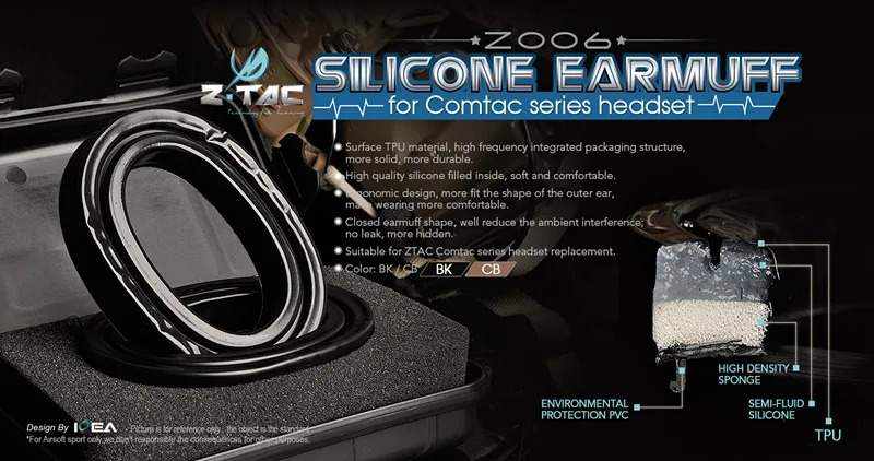 Orejera de silicona Z Tactical Z006 para auriculares Comta Series Hill-Peaks Anillos de sellado de gel para auriculares Pelto Series BK