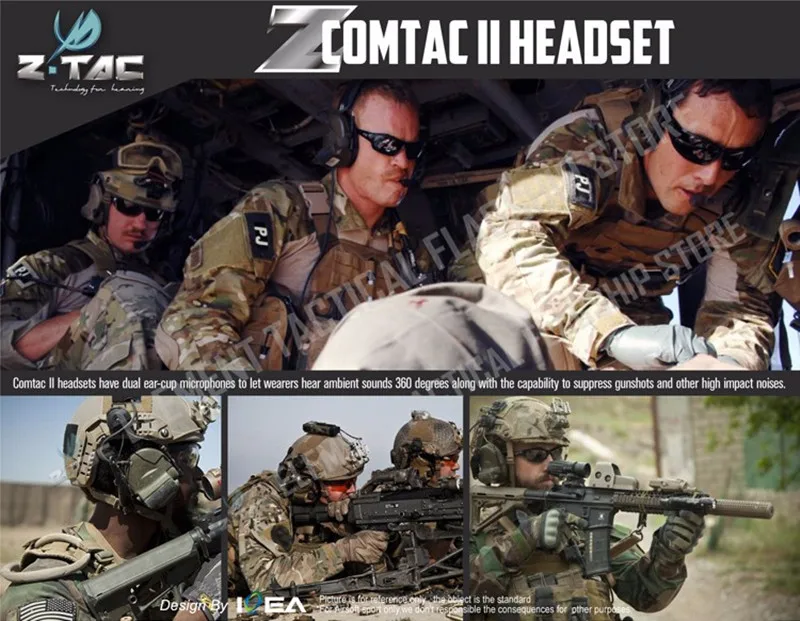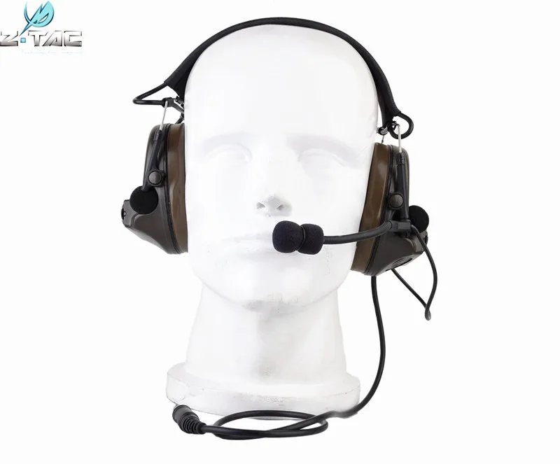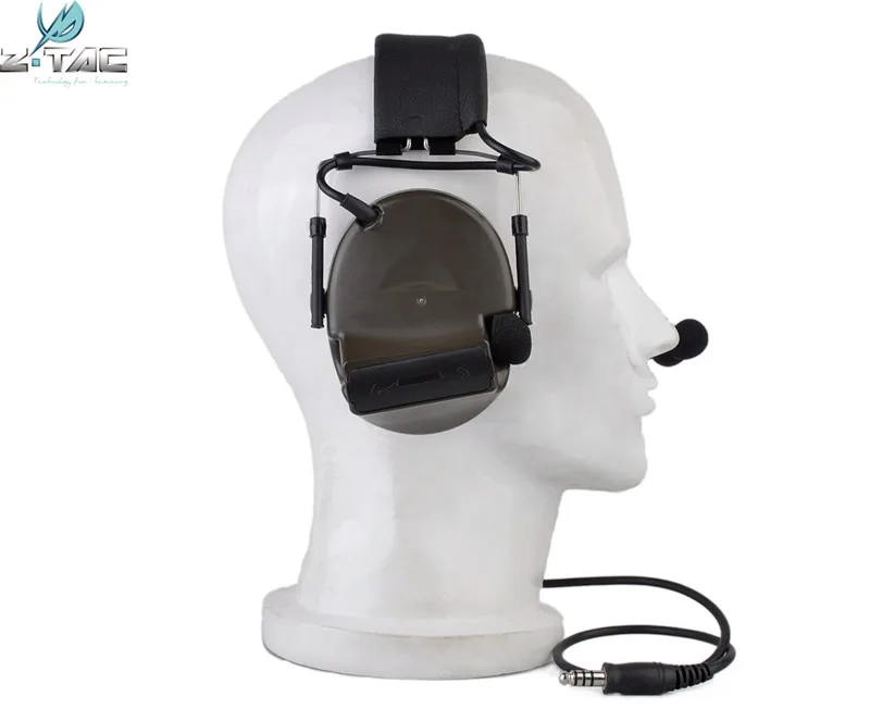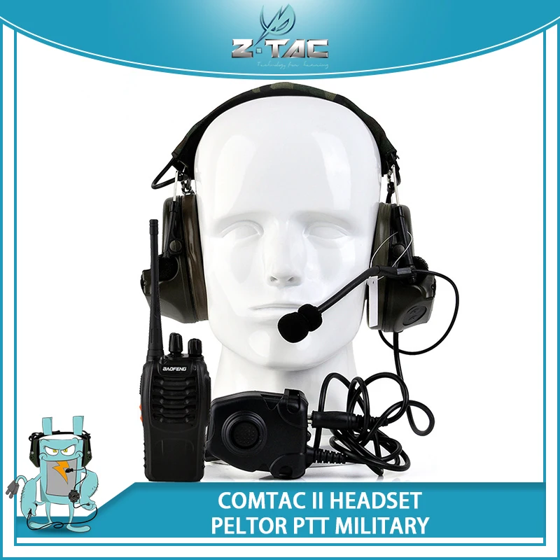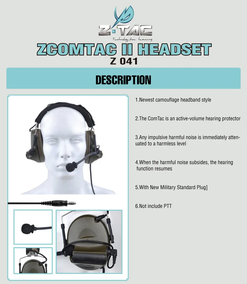 El último auricular electrónico Z talk-thru combina los electrónicos de escucha de sonido envolvente más sofisticados con un nuevo diseño de taza de perfil de línea delgada. Los auriculares Comtac II tienen micrófonos de doble copa para que los usuarios puedan escuchar sonidos ambientales de 360 grados junto con la capacidad de suprimir disparos y otros ruidos de alto impacto. Los micrófonos de copa proporcionan capacidad de escucha. Los dispositivos electrónicos suprimen instantáneamente los ruidos de impacto dañinos a 82 dBA dentro de los auriculares, mientras amplifican hasta 18 dB de ruidos/voces ambientales. 1 batería AA en cada taza, duración de la batería de 270 horas, diseño de carcasa de batería impermeable.