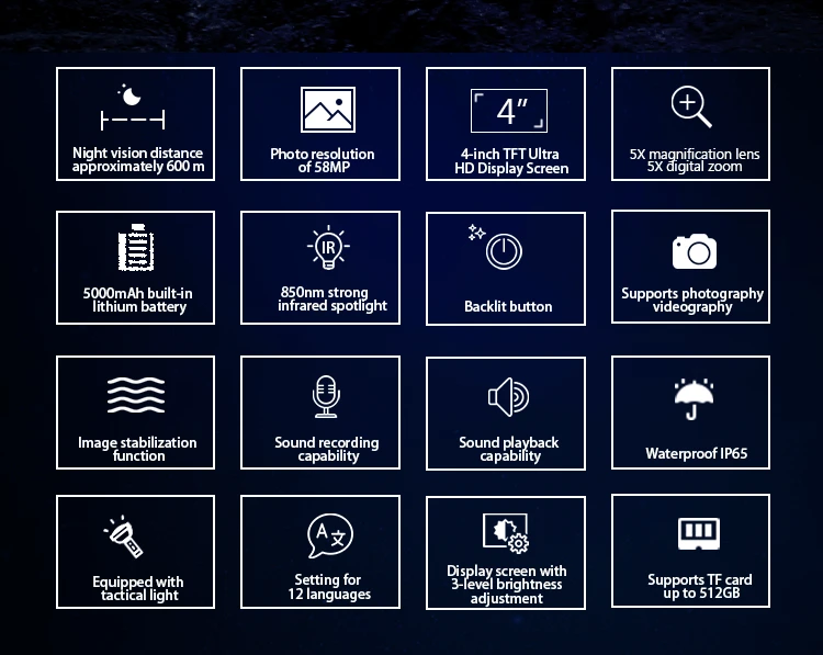 ♦ El dispositivo de visión nocturna admite una tarjeta de memoria de hasta 512 GB