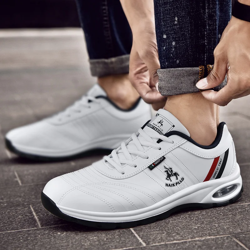 Zapatillas de correr con cámara de aire para hombre, zapatos de cuero transpirables para deportes al aire libre, antideslizantes, talla grande 38-47