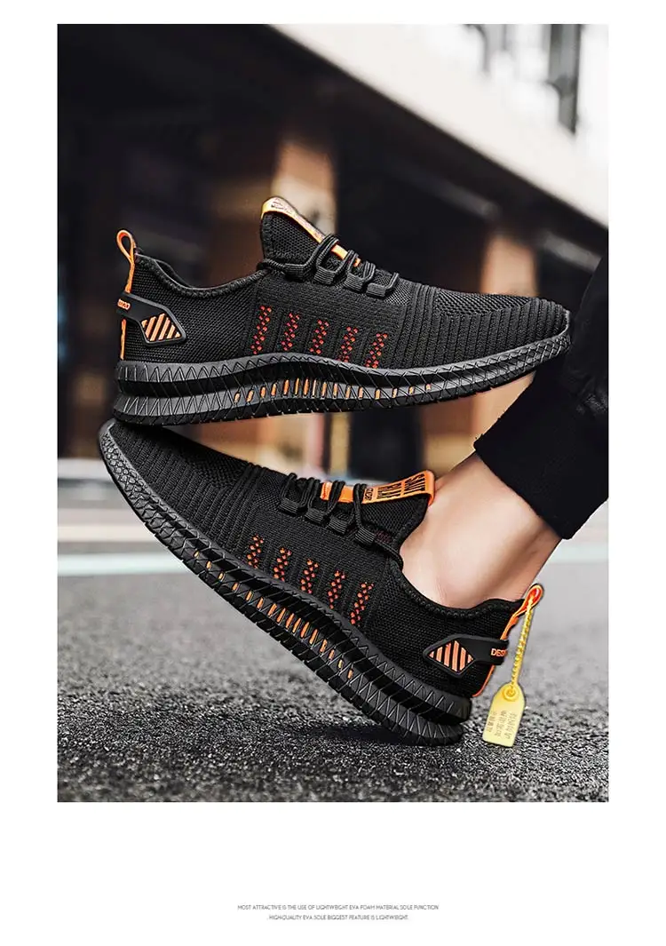 Zapatillas de deporte para hombre con cordones, zapatos informales tejidos voladores, vulcanizados, ligeros, planos, cómodos, para correr, de talla grande 48