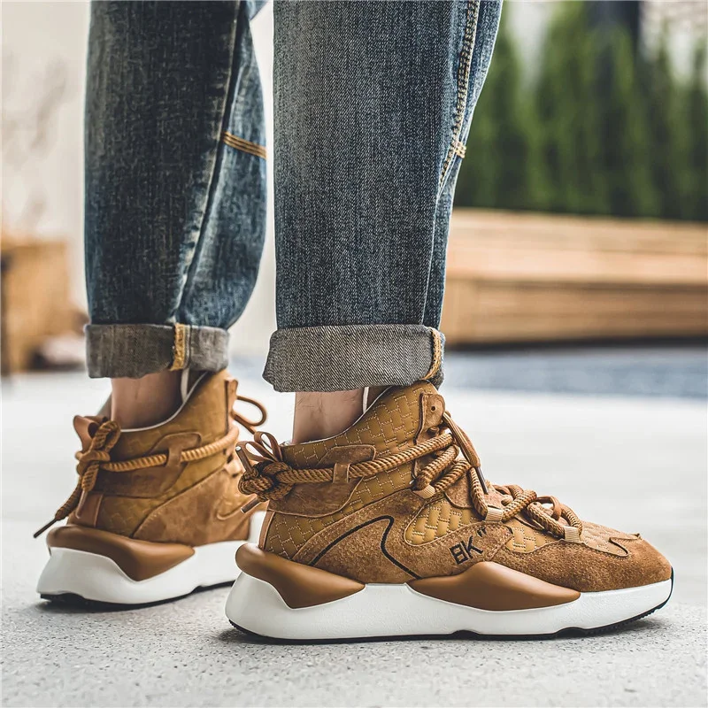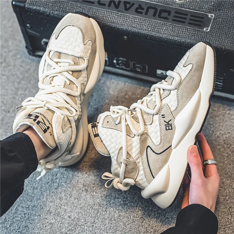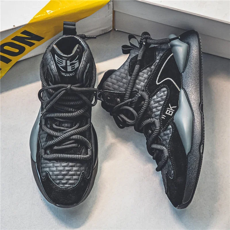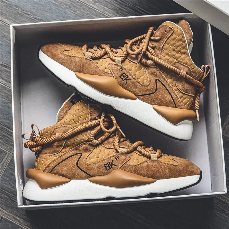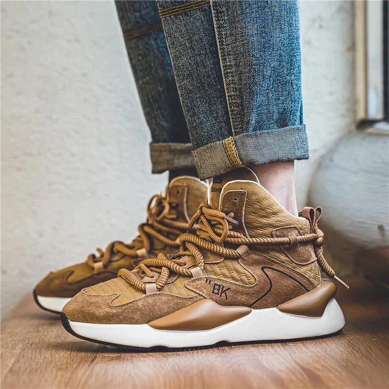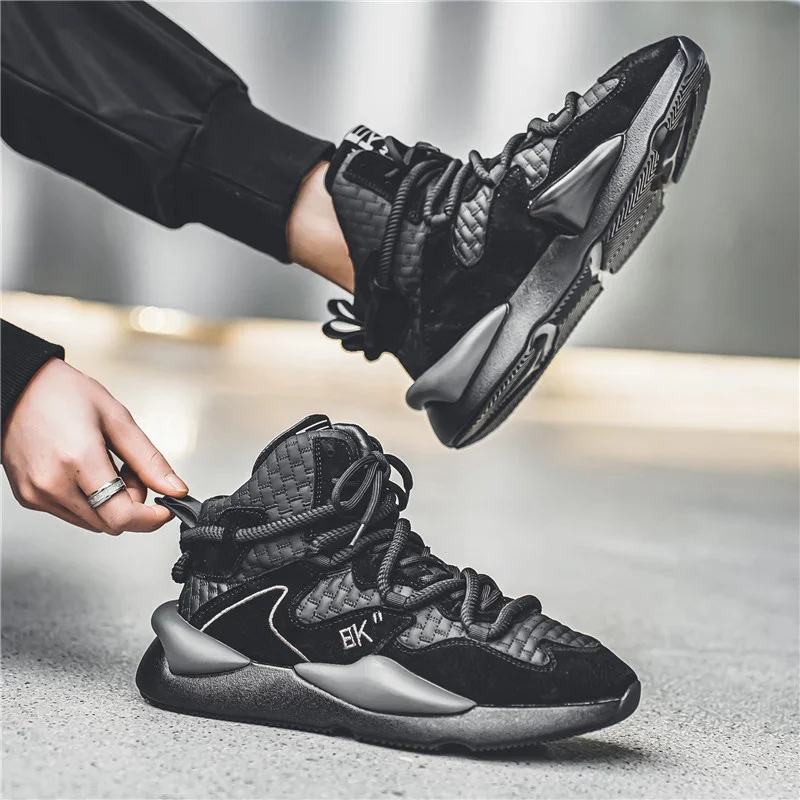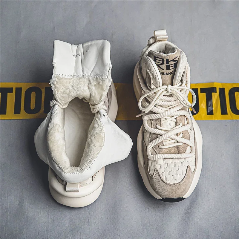 Zapatillas de felpa de corte alto para hombre, zapatos cálidos y a la moda para deportes y ocio, con cordones, para correr, para jóvenes, para otoño e invierno, novedad