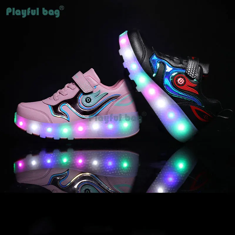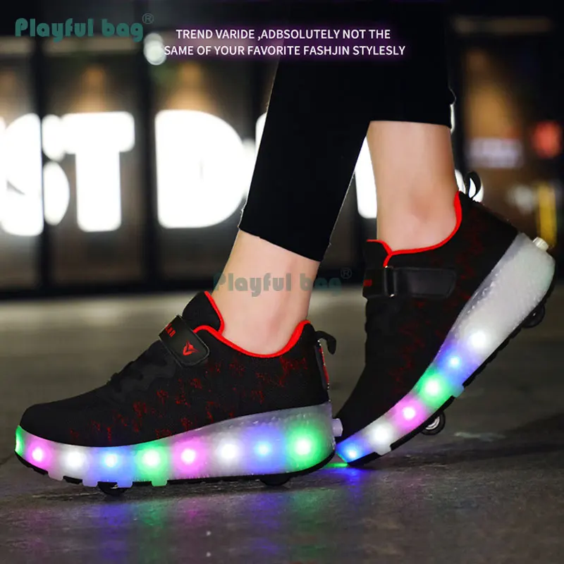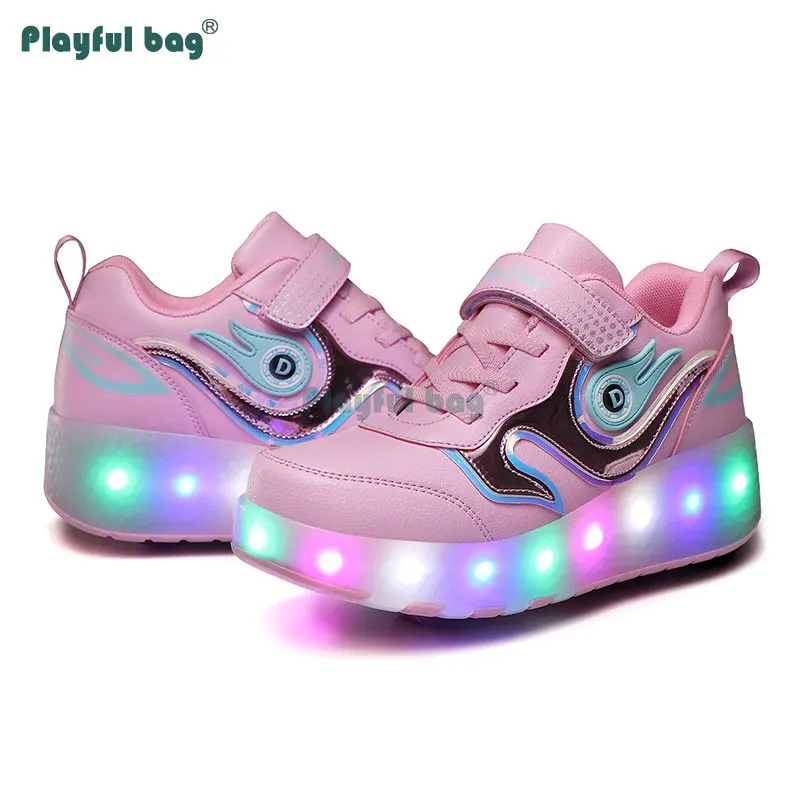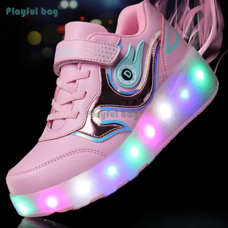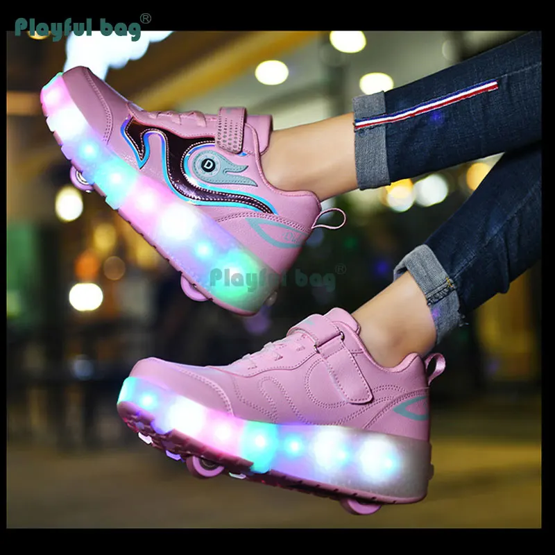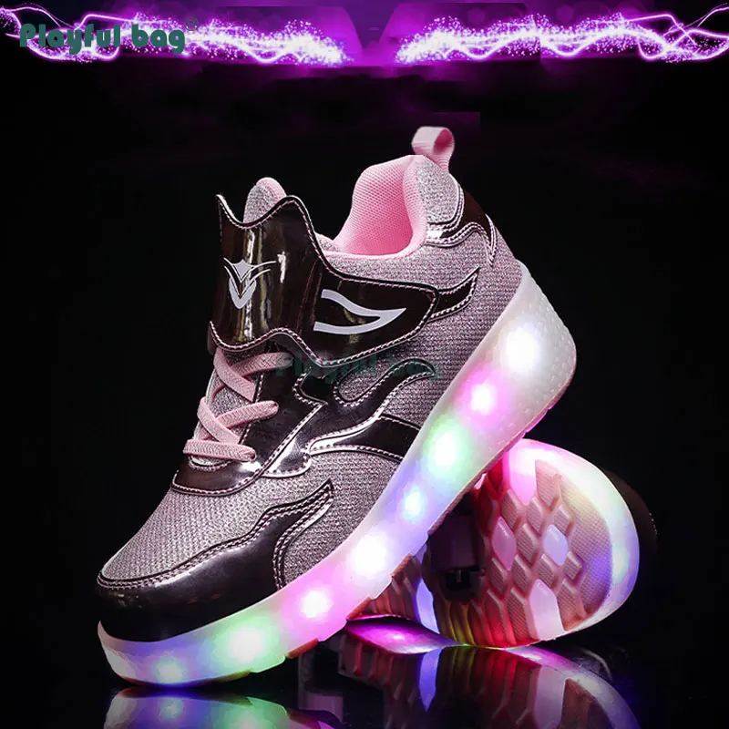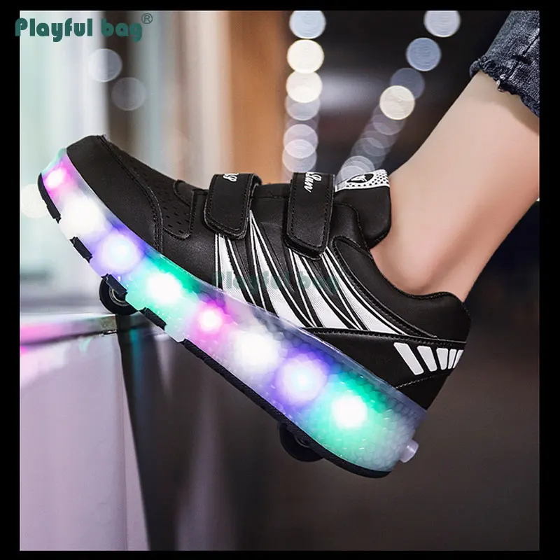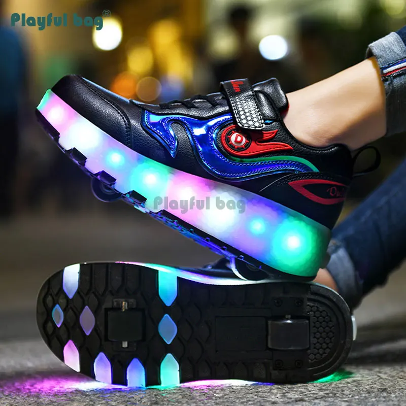 Zapatillas con ruedas LED para niños, zapatos deportivos de 2 ruedas con carga USB, patines para exteriores, AMB123