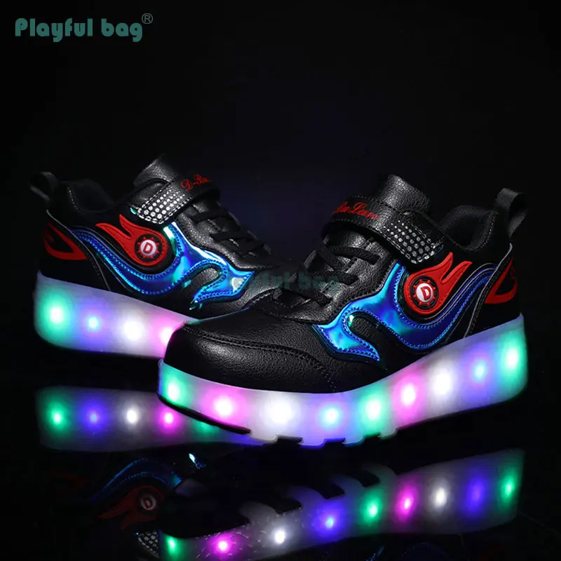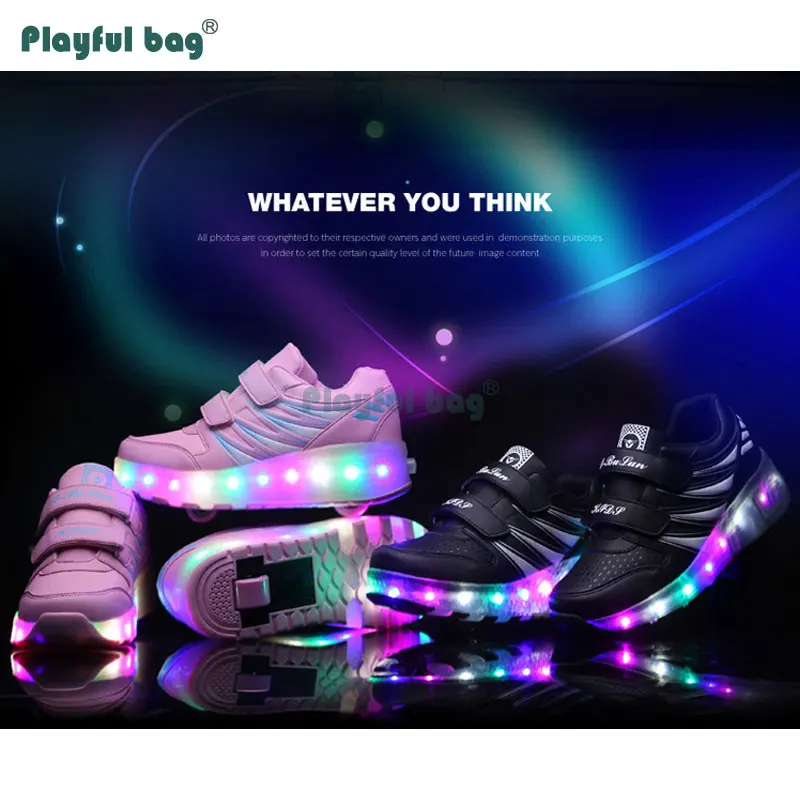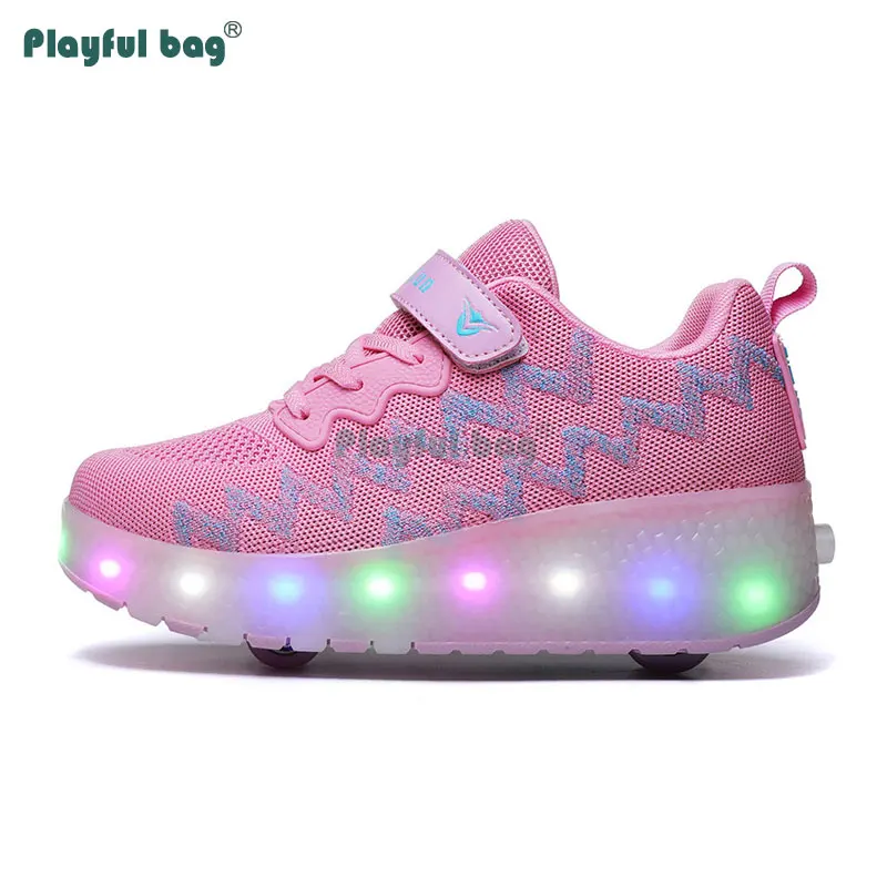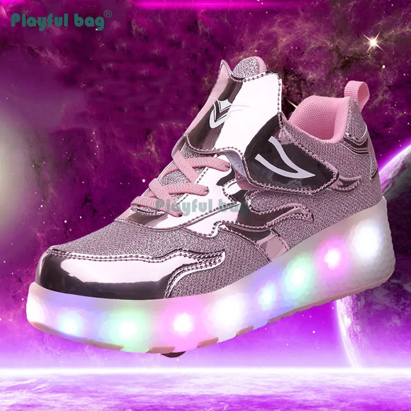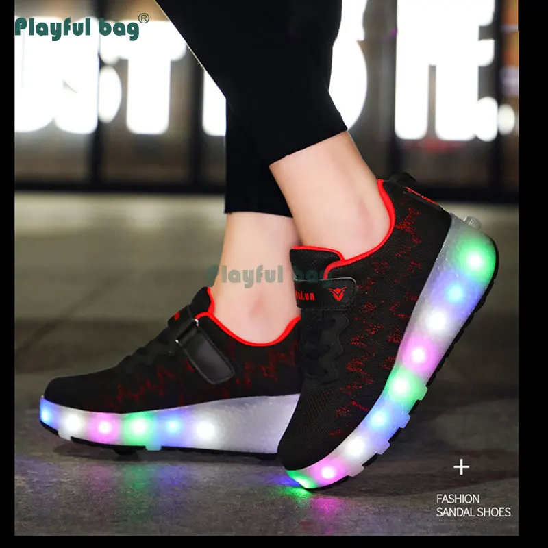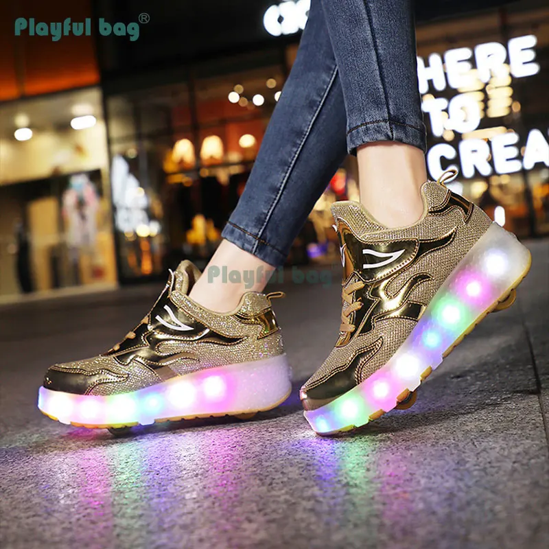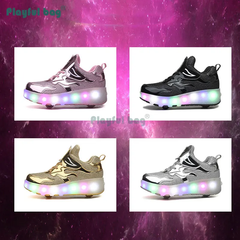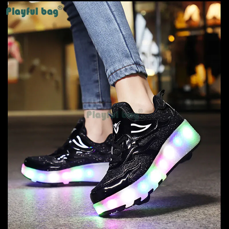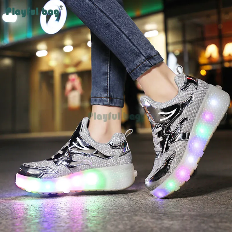 Zapatillas con ruedas LED para niños, zapatos deportivos de 2 ruedas con carga USB, patines para exteriores, AMB123