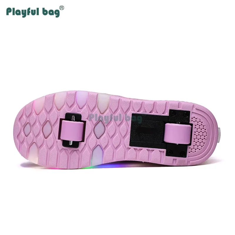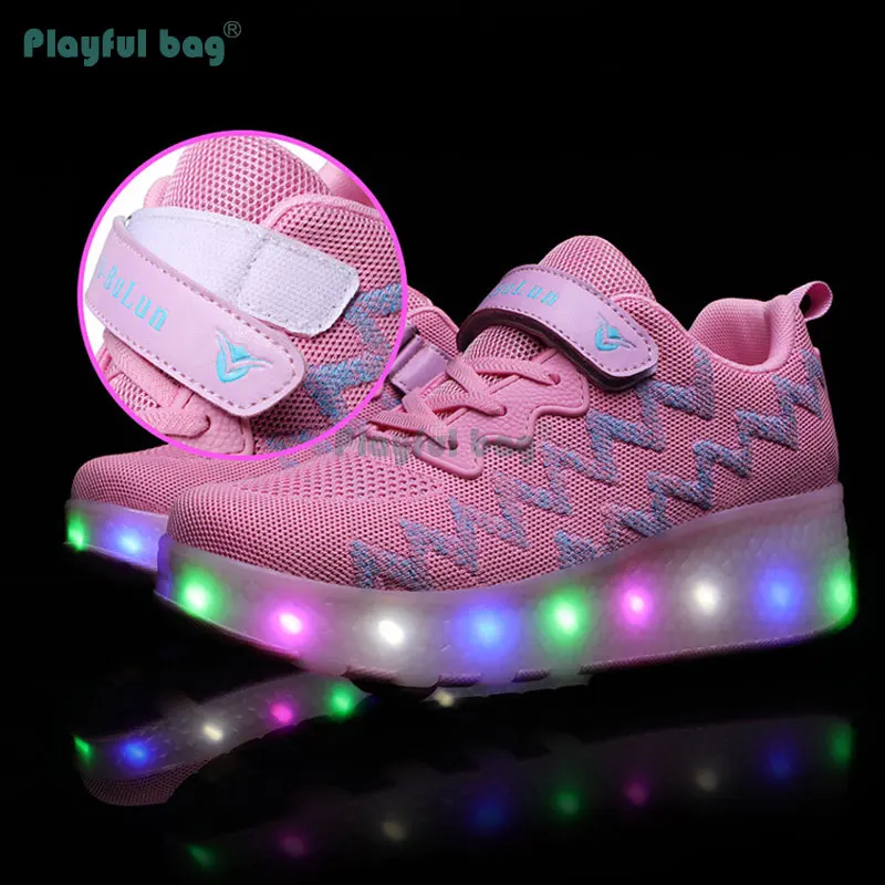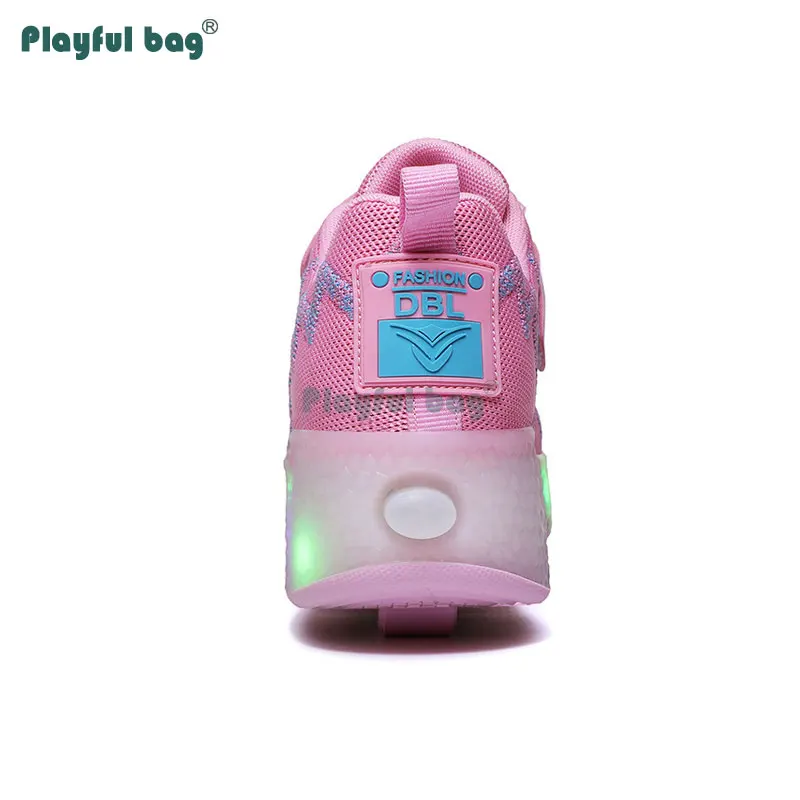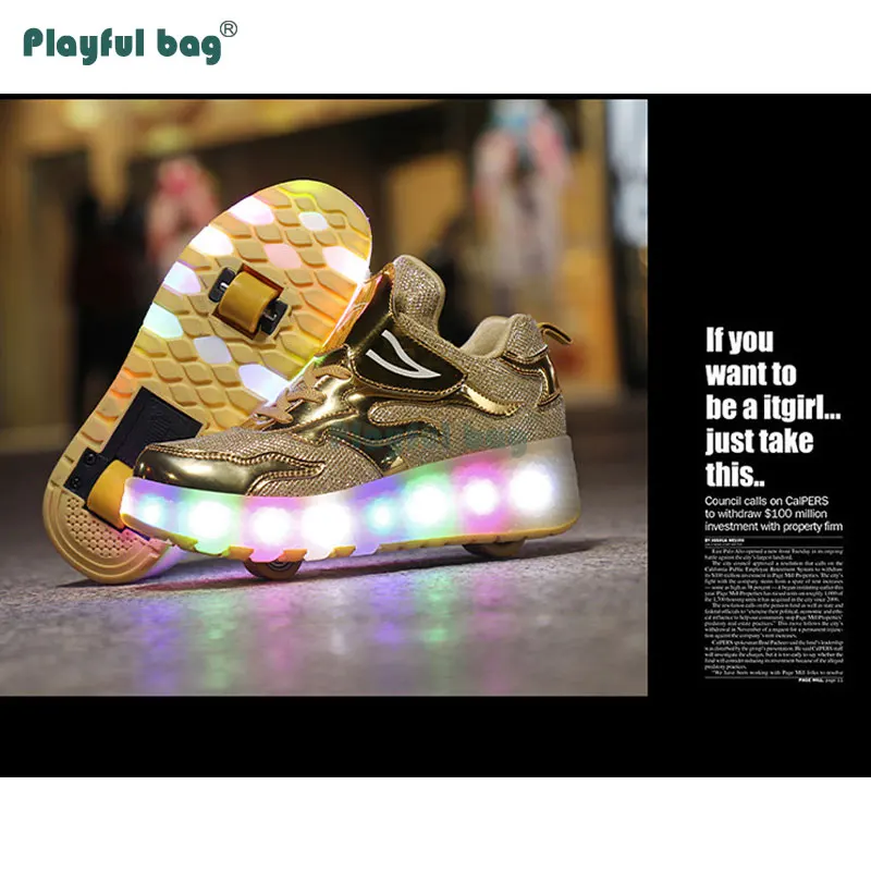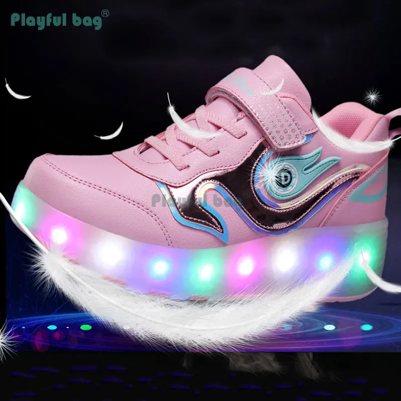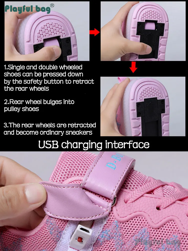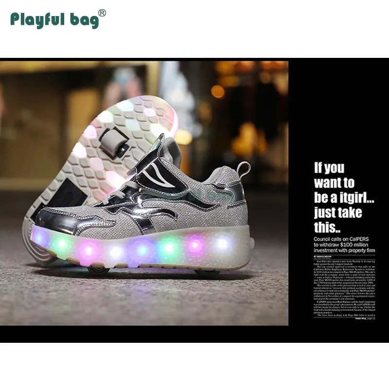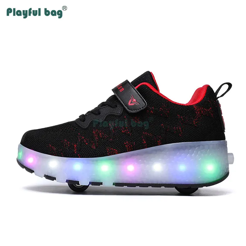 Zapatillas con ruedas LED para niños, zapatos deportivos de 2 ruedas con carga USB, patines para exteriores, AMB123