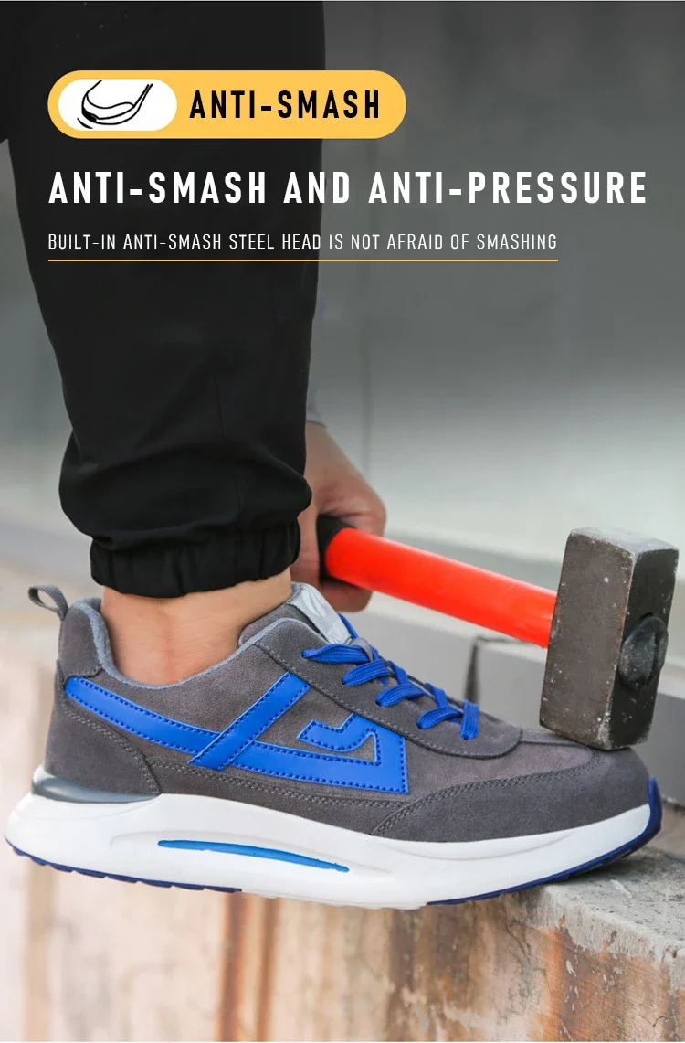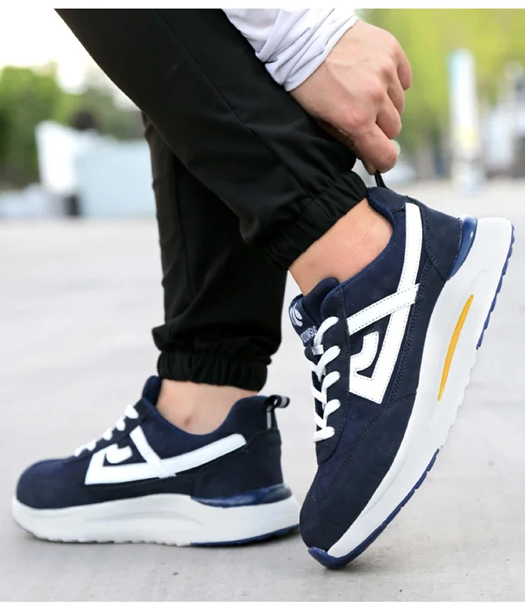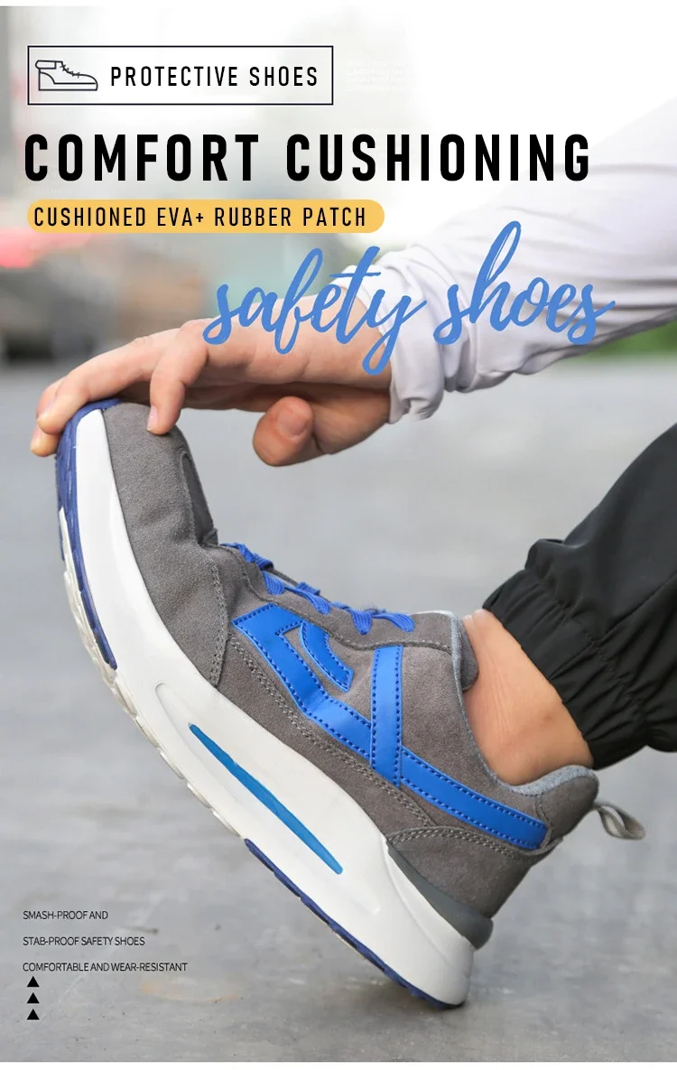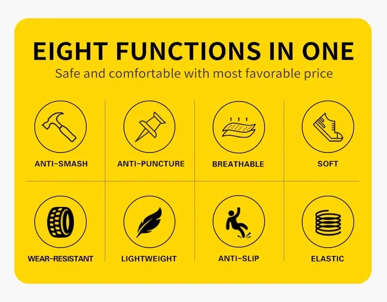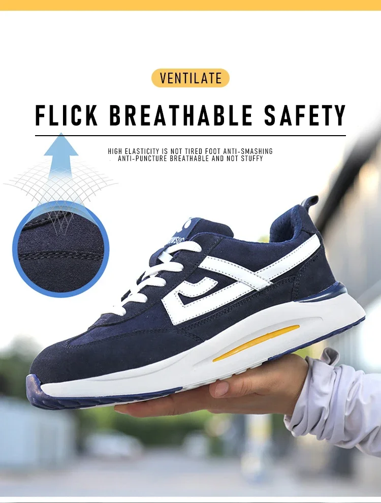 Zapato DE SEGURIDAD súper ligero: es como el peso de un par de zapatos para correr. Pueden ayudarle a trabajar feliz todo el día sin agotar sus pies. Con plantillas supersuaves y suela elástica alta, tus pies estarán seguros y cómodos. La parte superior de punto volador es muy suave, mantiene tus pies cómodos y transpirables.