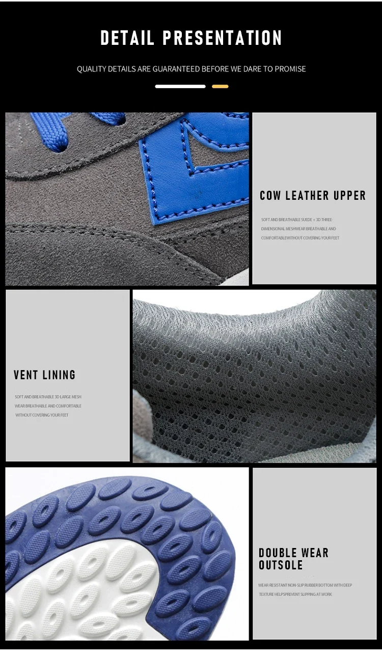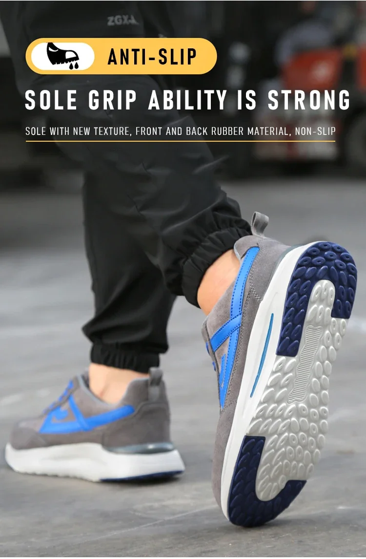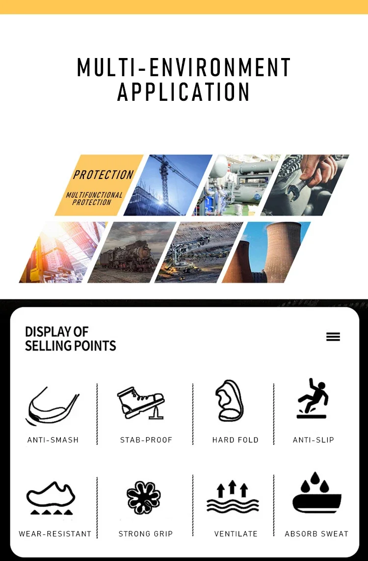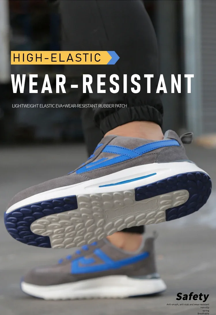 Zapato DE SEGURIDAD súper ligero: es como el peso de un par de zapatos para correr. Pueden ayudarle a trabajar feliz todo el día sin agotar sus pies. Con plantillas supersuaves y suela elástica alta, tus pies estarán seguros y cómodos. La parte superior de punto volador es muy suave, mantiene tus pies cómodos y transpirables.