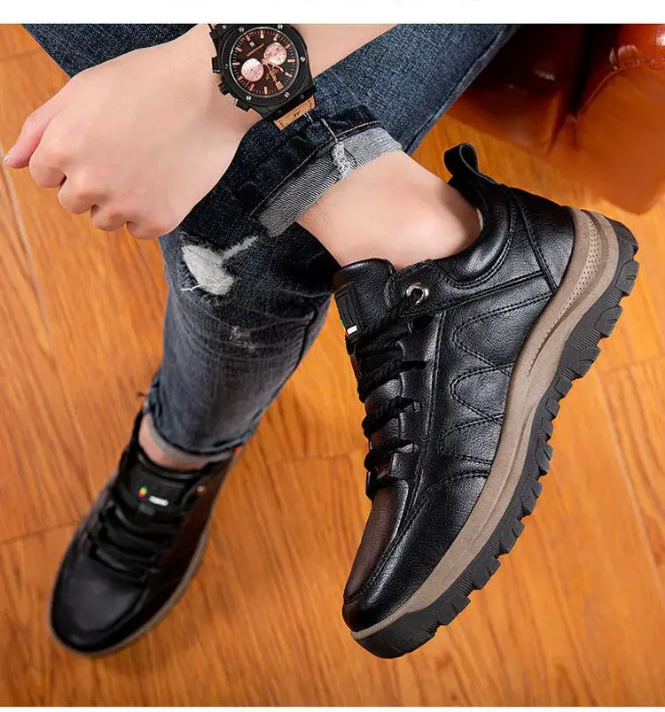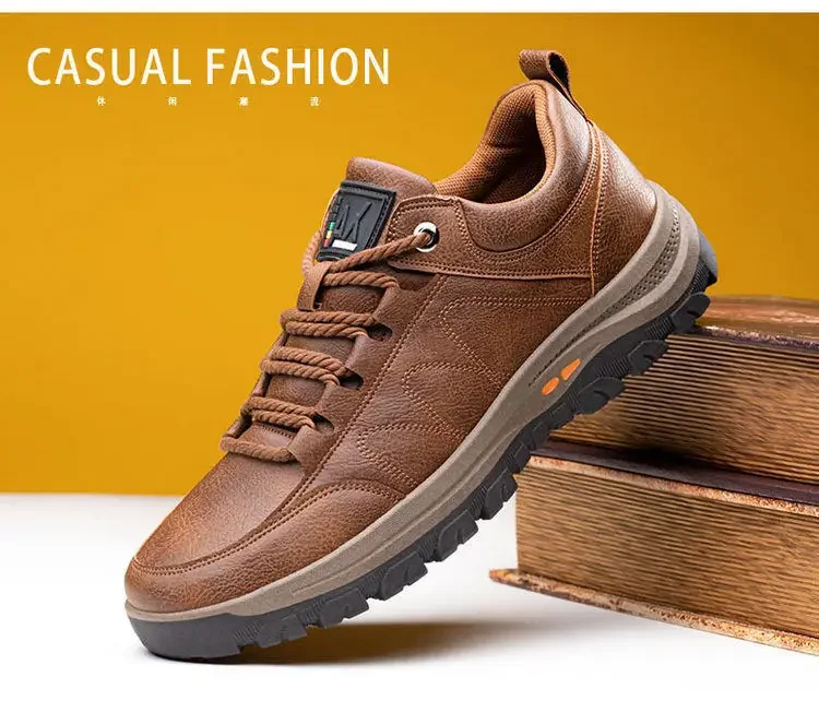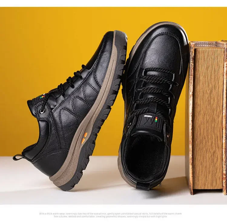 Zapatos de cuero informales de marca para hombre, botas de seguridad para el trabajo para conducir al aire libre, moda urbana, mocasines de negocios para hombre, otoño