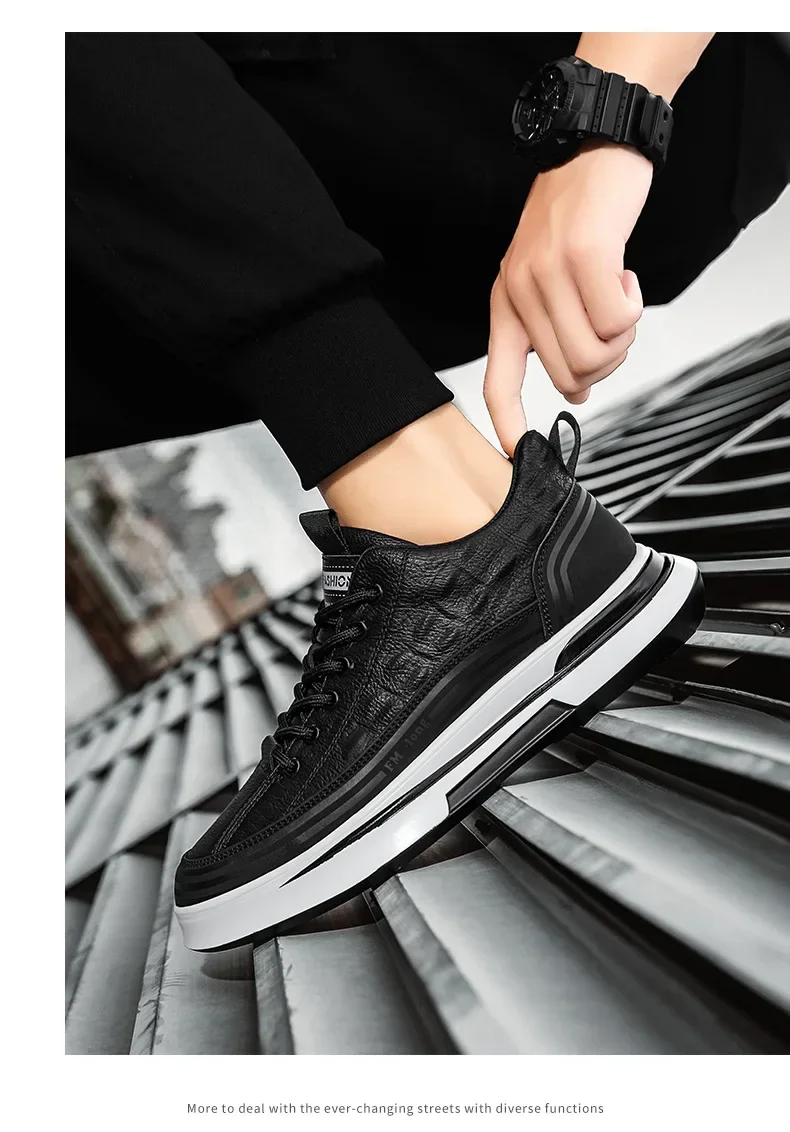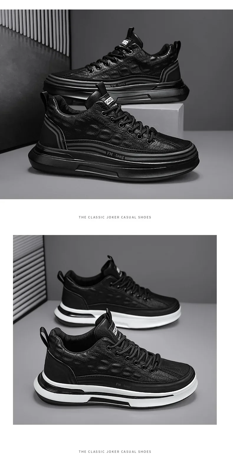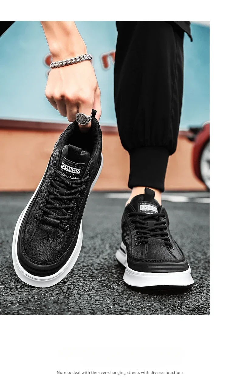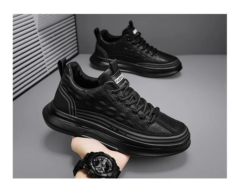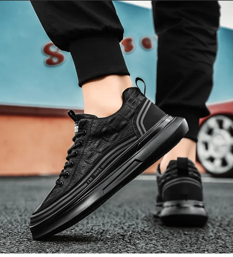 Zapatos Deportivos informales de cuero negro para hombre, zapatillas de deporte a la moda, zapatos de plataforma cómodos para exteriores, Tenis masculinos