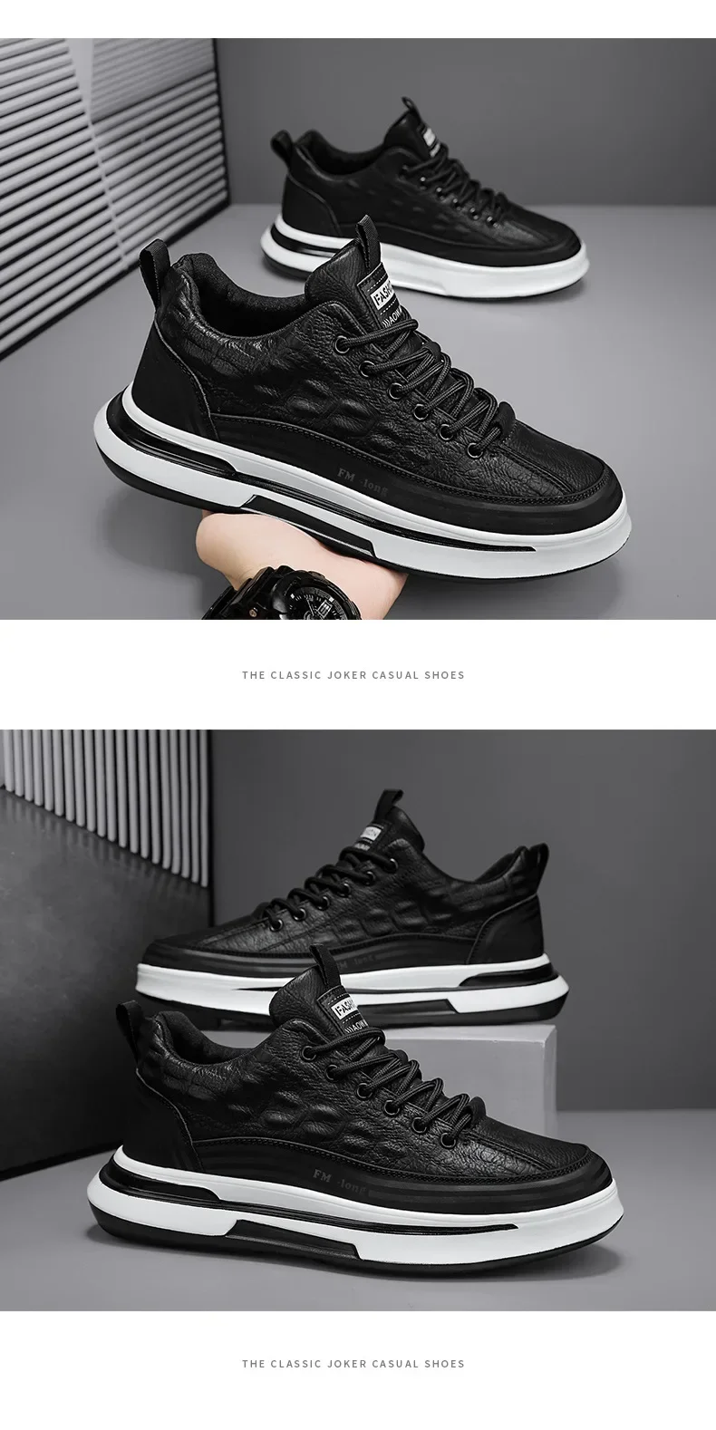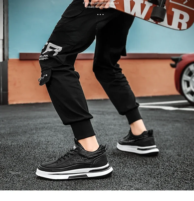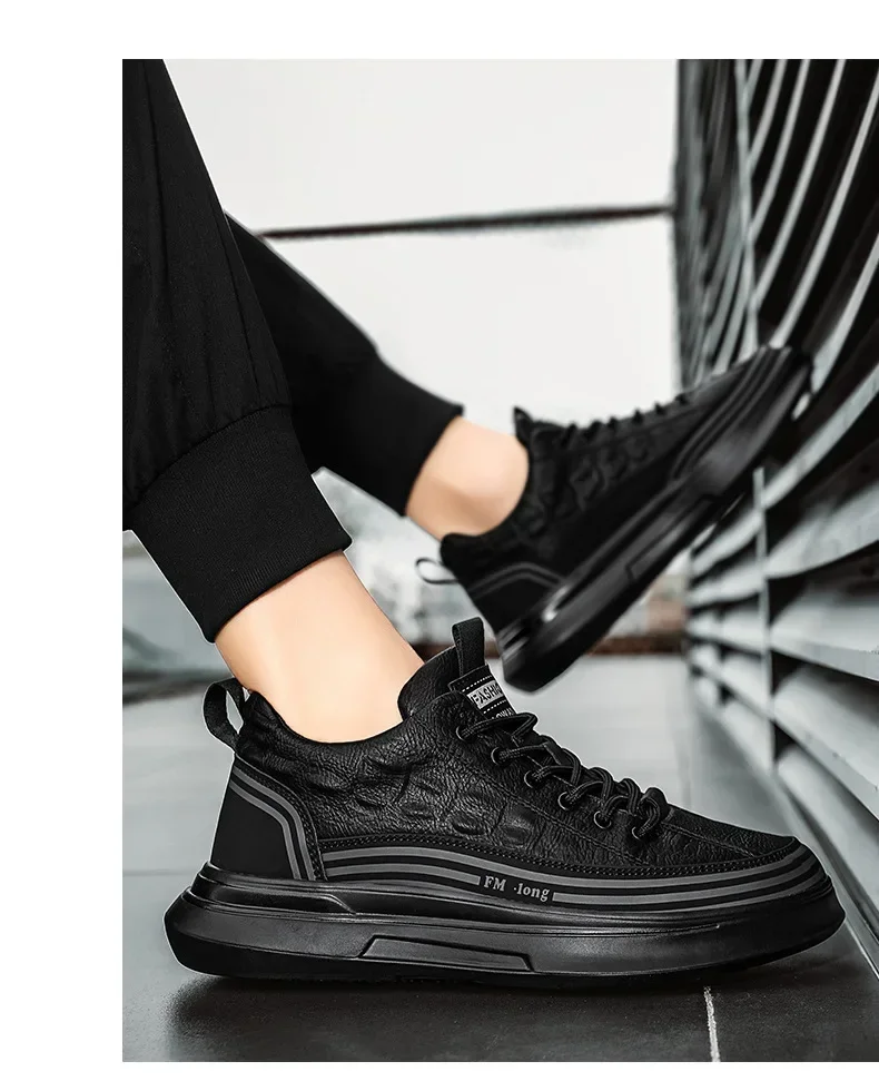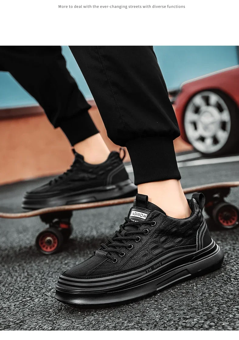 Zapatos Deportivos informales de cuero negro para hombre, zapatillas de deporte a la moda, zapatos de plataforma cómodos para exteriores, Tenis masculinos