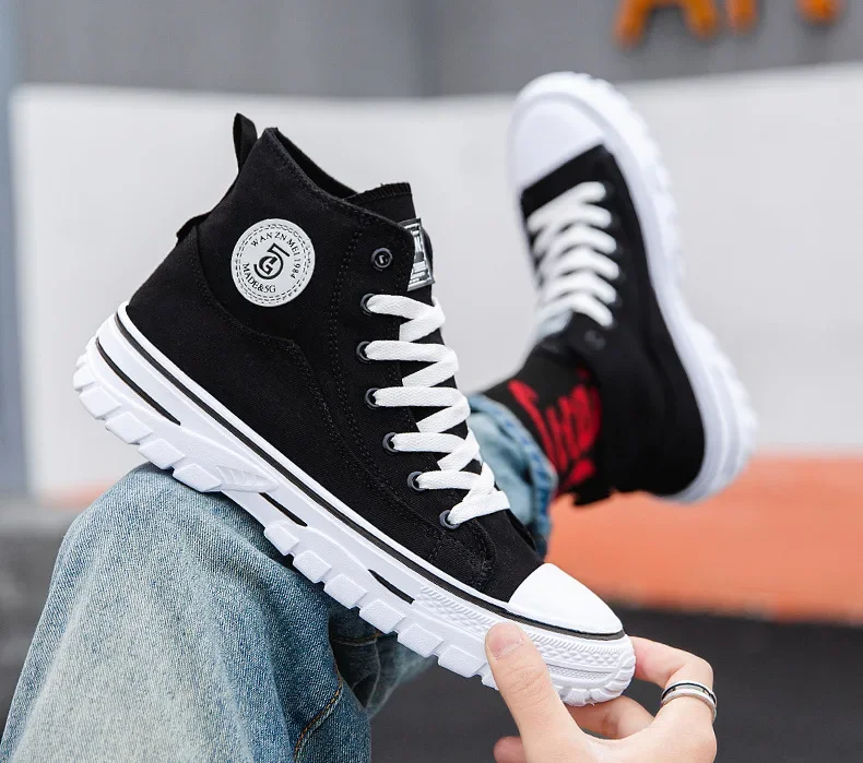 Zapatos de lona informales de alta calidad para hombre, zapatillas deportivas transpirables de tenis, color gris y negro, calzado de tendencia para monopatín, 44