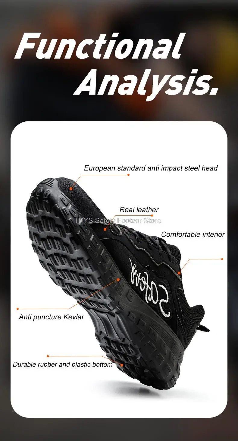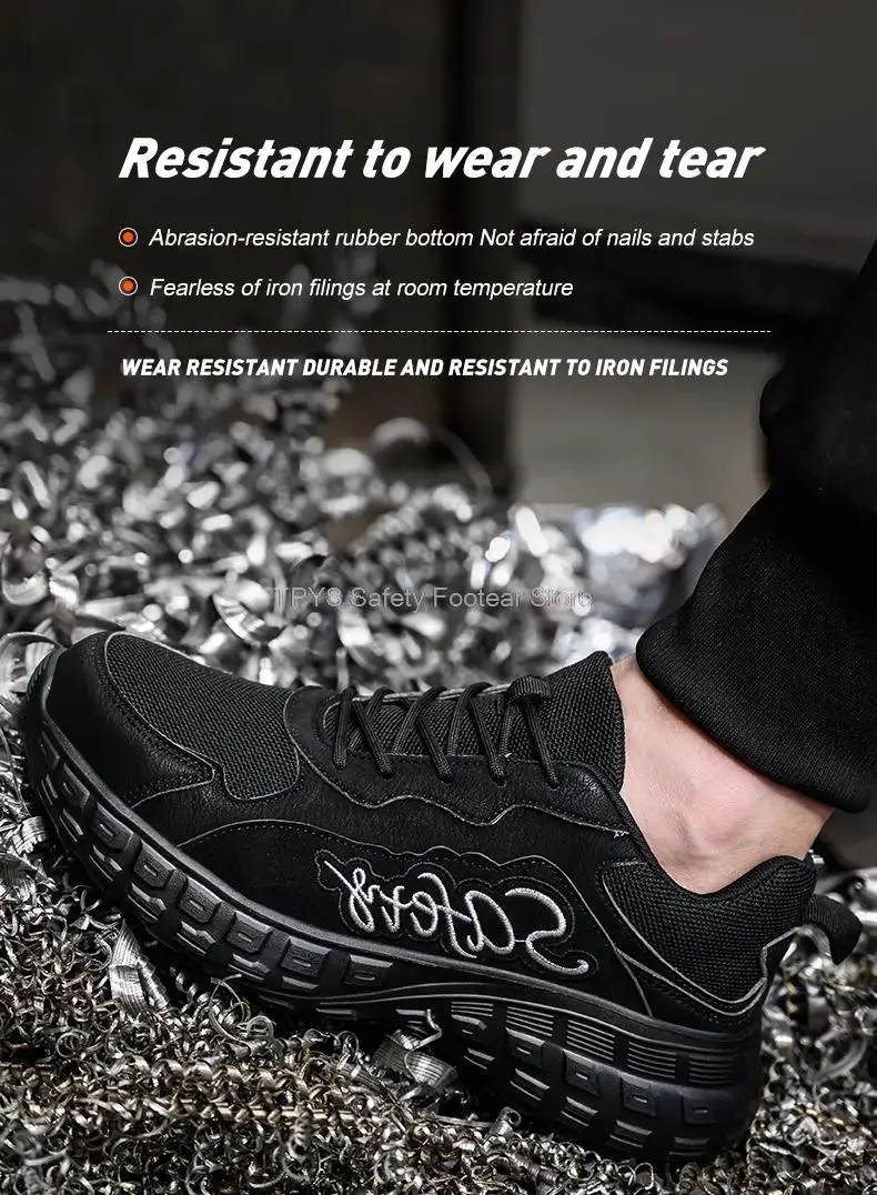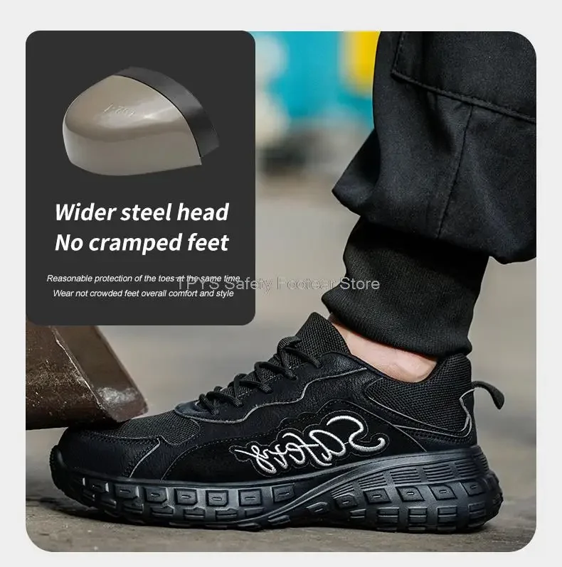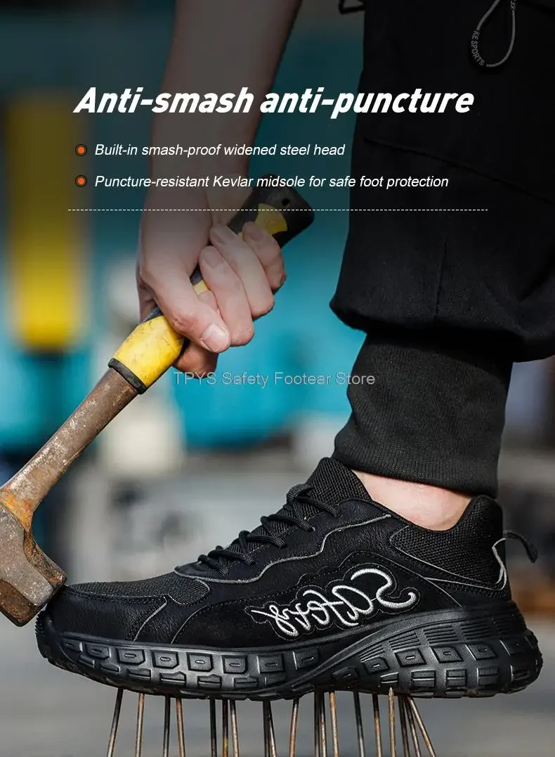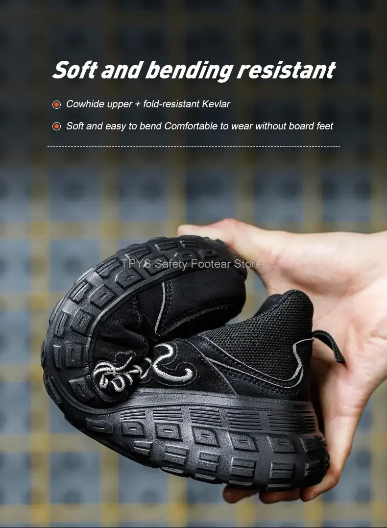 Entresuela de Kevlar antipinchazos: estos zapatos con punta de acero están hechos de Kevlar, que es un material de fibra protectora. Puede proteger los pies de ser perforados por objetos afilados como clavos o barras de acero.
