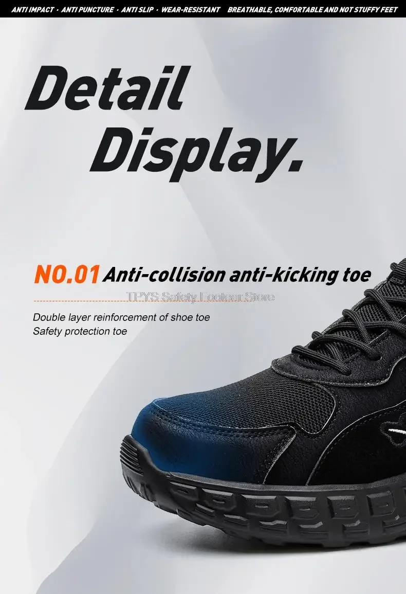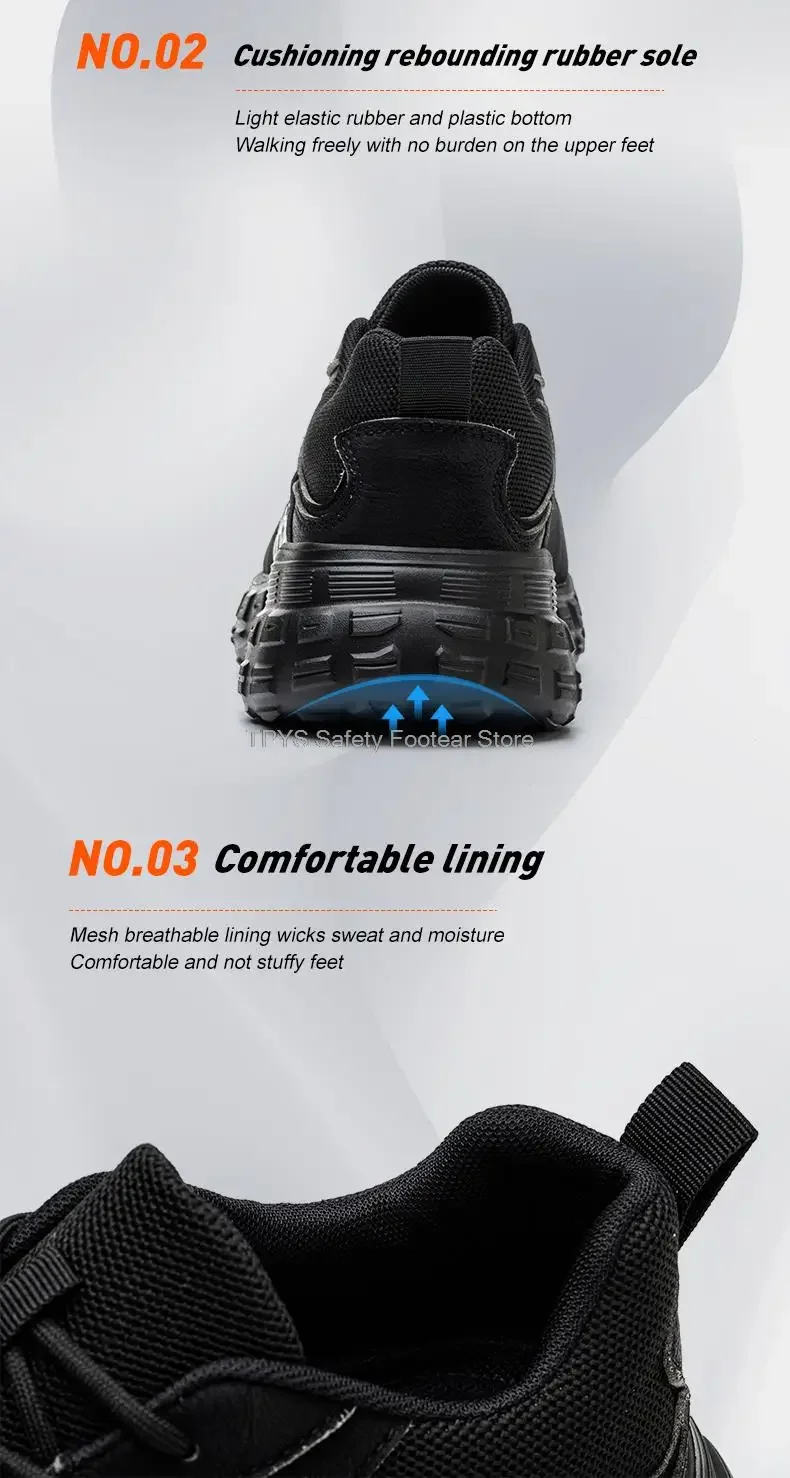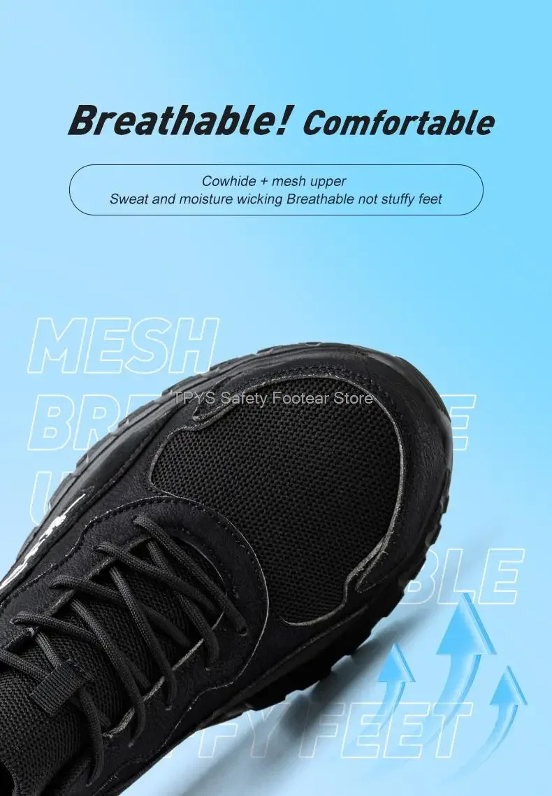 Zapato DE SEGURIDAD súper ligero: es como el peso de un par de zapatos para correr. Pueden ayudarle a trabajar feliz todo el día sin agotar sus pies. Con plantillas supersuaves y suela elástica alta, tus pies estarán seguros y cómodos. La parte superior de punto volador es muy suave, mantiene tus pies cómodos y transpirables.