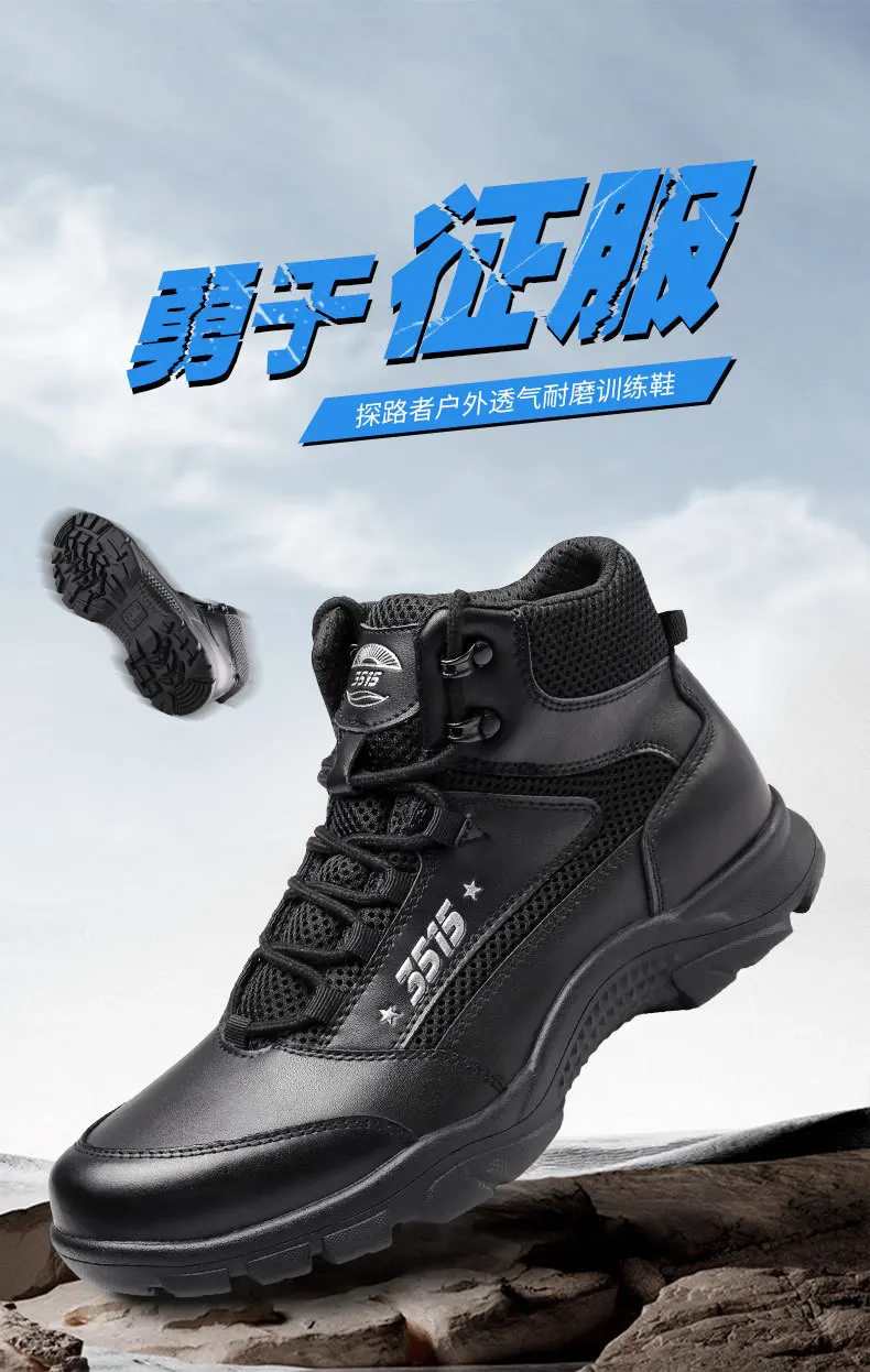 Zapatos de senderismo de cuero de vaca, botas de caza transpirables para hombre, botas tácticas de combate en el desierto, trekking para hombre, zapatillas negras para mujer, botines