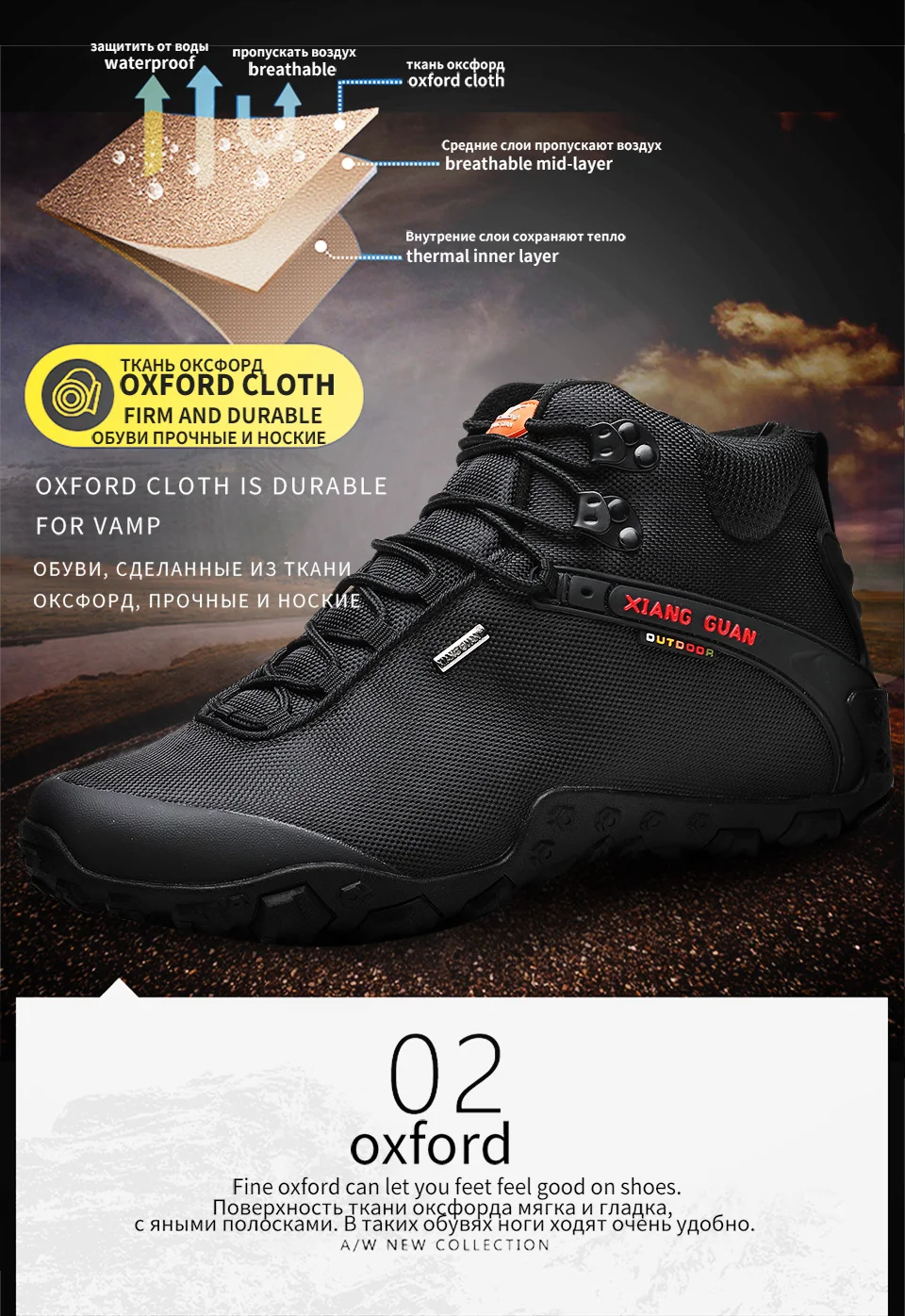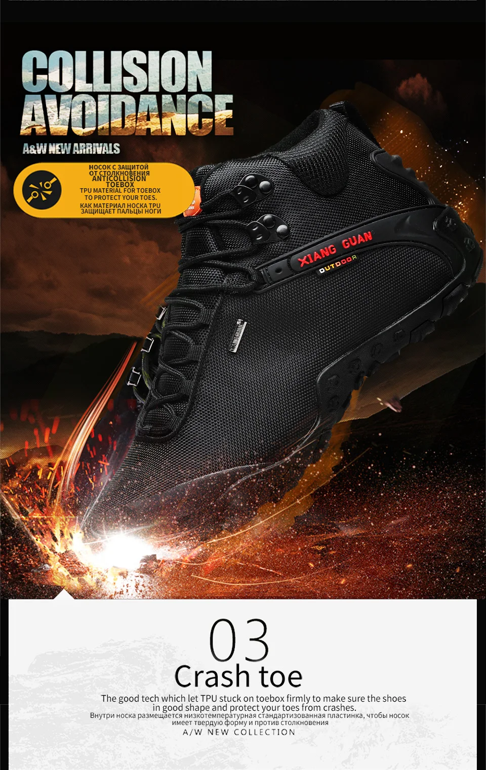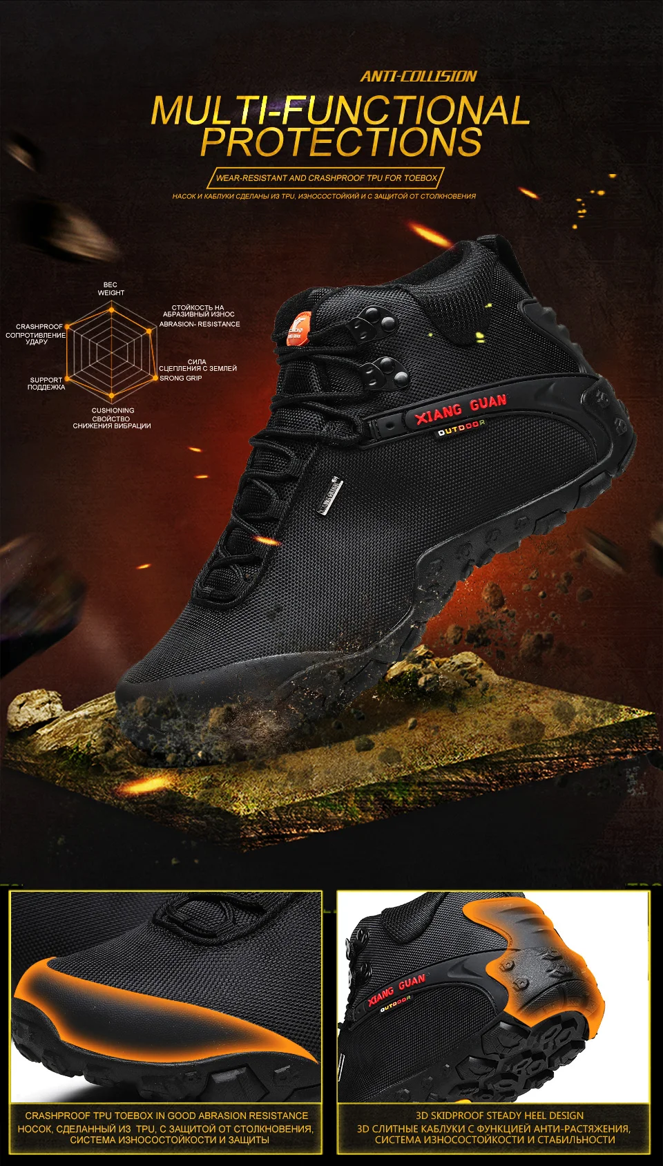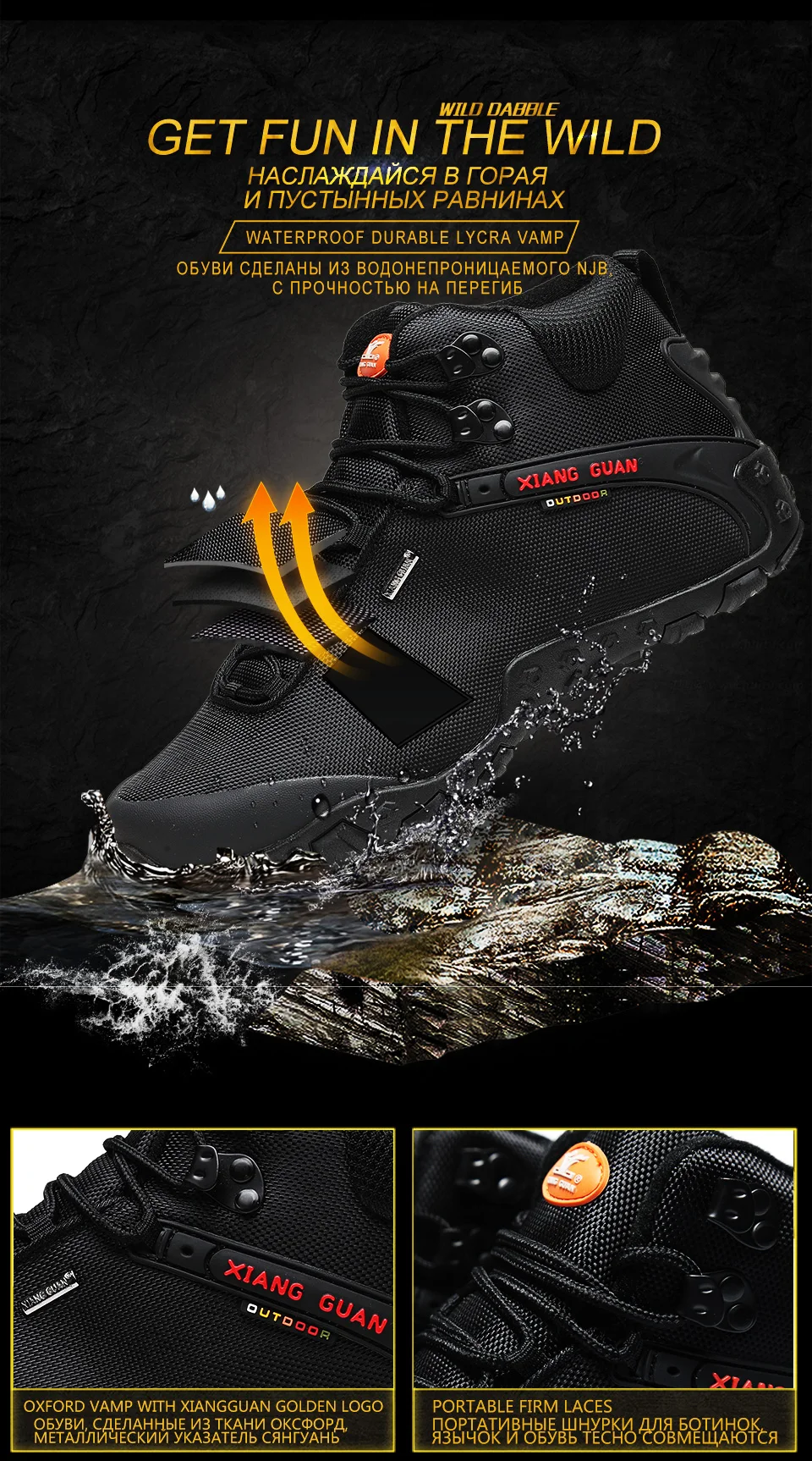 XIANG GUAN es una marca líder china en actividades al aire libre. Nuestra empresa está especializada en la producción de zapatos de senderismo y zapatos para exteriores. XIANG GUAN Outdoor Products Limited Company está afiliada a Putian Traveler Outdoor Products Limited Company. Nuestra empresa fue fundada en 2006 y nuestra empresa compone el exterior de China El legendario capítulo de la empresa con una tasa anual de crecimiento de compuestos saludables de más del 50% a lo largo de los años. ¡Nuestra naturaleza no cambia incluso después de años de viento y lluvia! Después de muchos años de formación y desarrollo, la marca XIANG GUAN se ha apegado a la defensa de la protección del medio ambiente al aire libre y las llamadas Para que los amantes del aire libre presten siempre atención a la protección del medio ambiente cuando disfruten de las actividades al aire libre. Sobre la base de este concepto, cada pieza de productos para exteriores de la marca XIANG GUAN está hecha con materiales respetuosos con el medio ambiente para minimizar el impacto de las actividades humanas en la naturaleza.