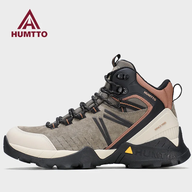 Zapatos de senderismo de piel de vaca HUMTTO, botas de caza impermeables para hombre, botas tácticas de combate en el desierto, botas de trekking para mujer, zapatillas tobilleras para caminar