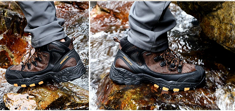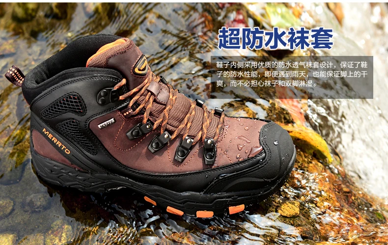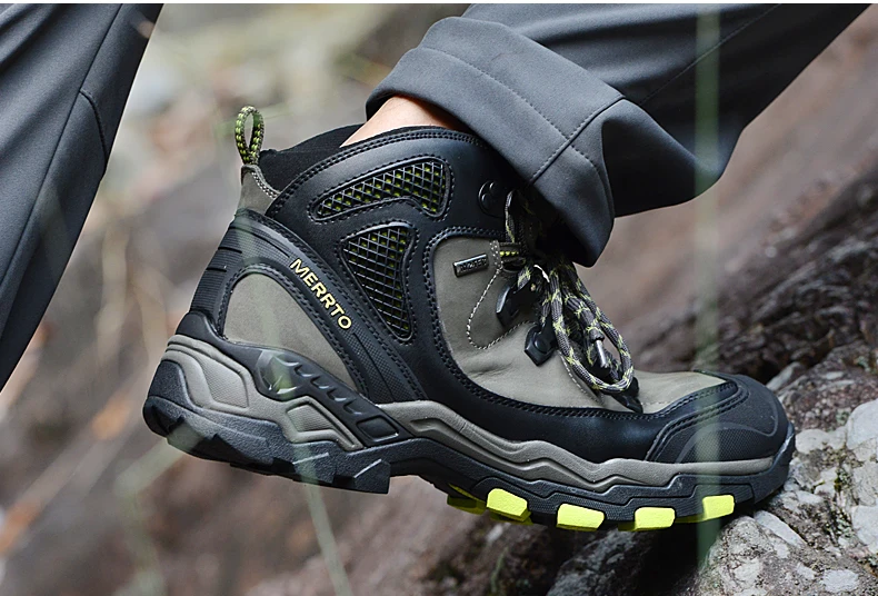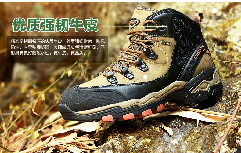 Zapatos de senderismo de piel de vaca MERRTO, botas de trekking para hombre, botas de caza impermeables de montaña, zapatillas de deporte para hombre, botines tácticos de combate en el desierto