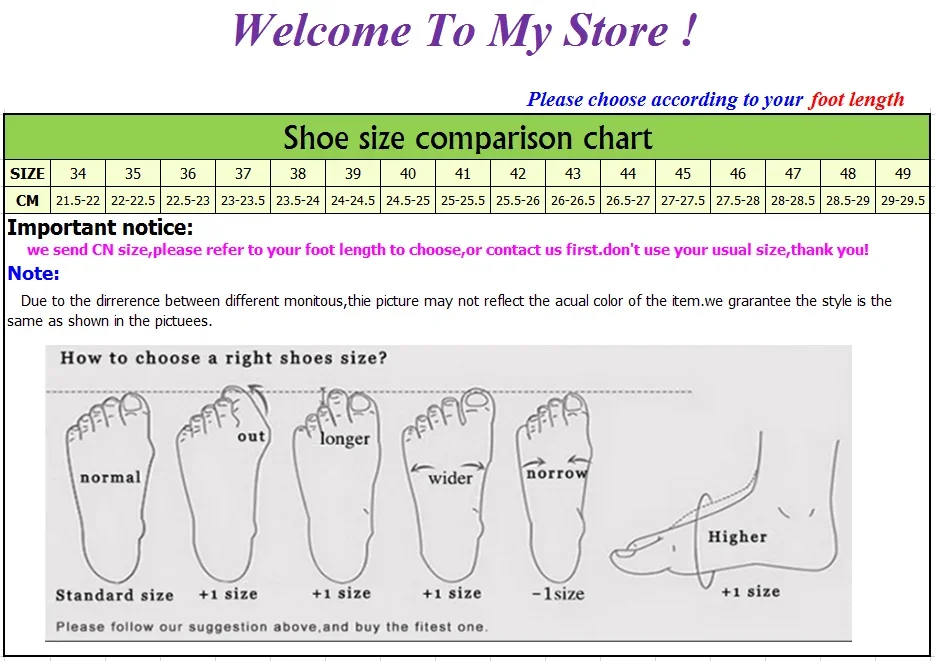 ¡Elige la talla según la longitud del pie (desde el talón hasta la punta)!