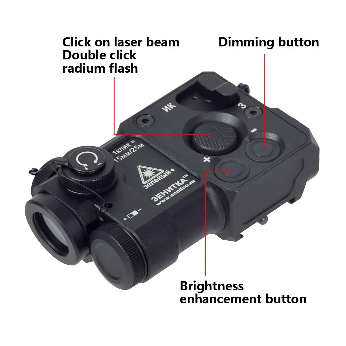 ¡Este producto no incluye pilas!PEQ15 no tiene láser IR, solo luces LED IRPERST-4 no tiene luz, solo láser IR verde
