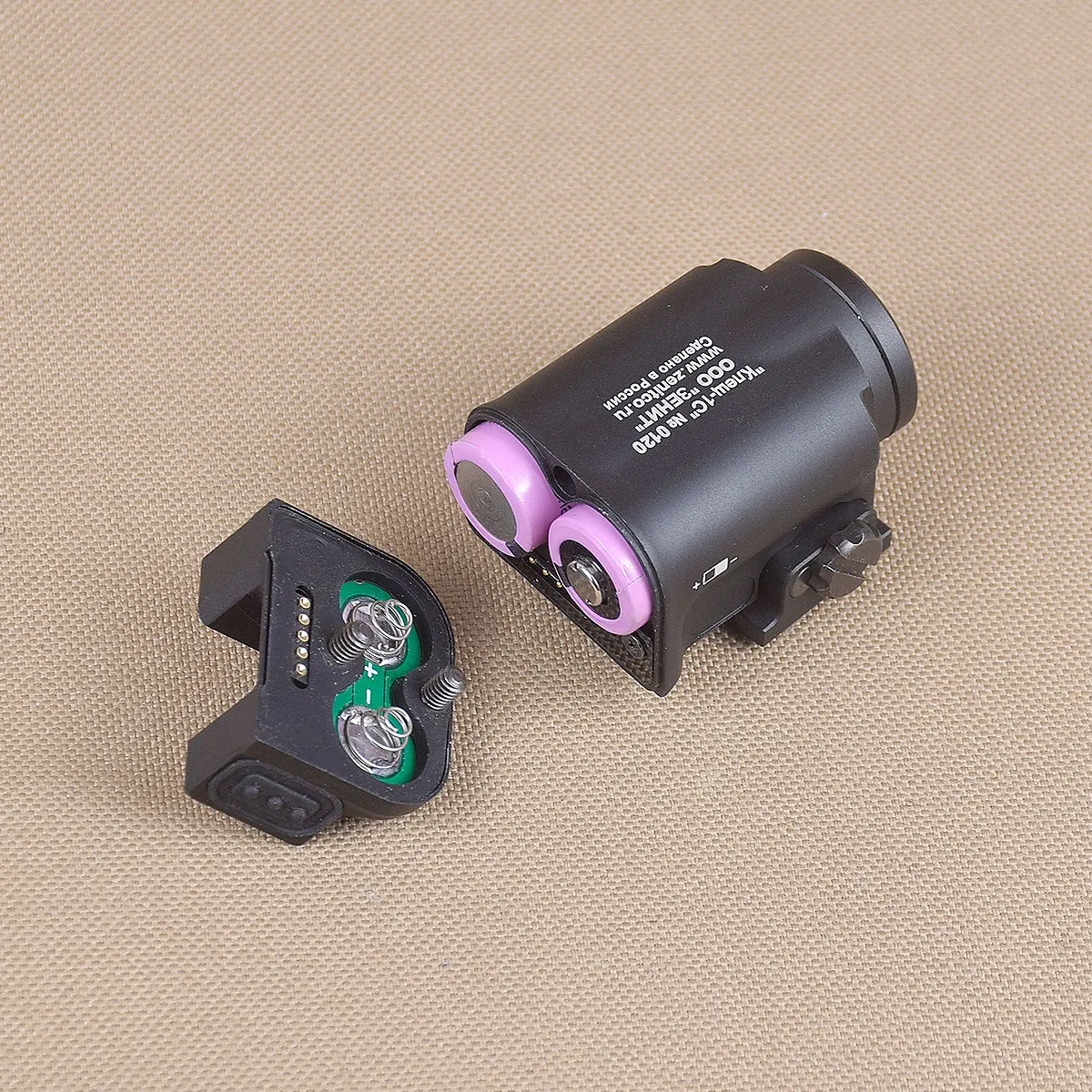 El producto funciona con dos baterías CR123A con una tensión nominal de 3V instaladas en el estuche.