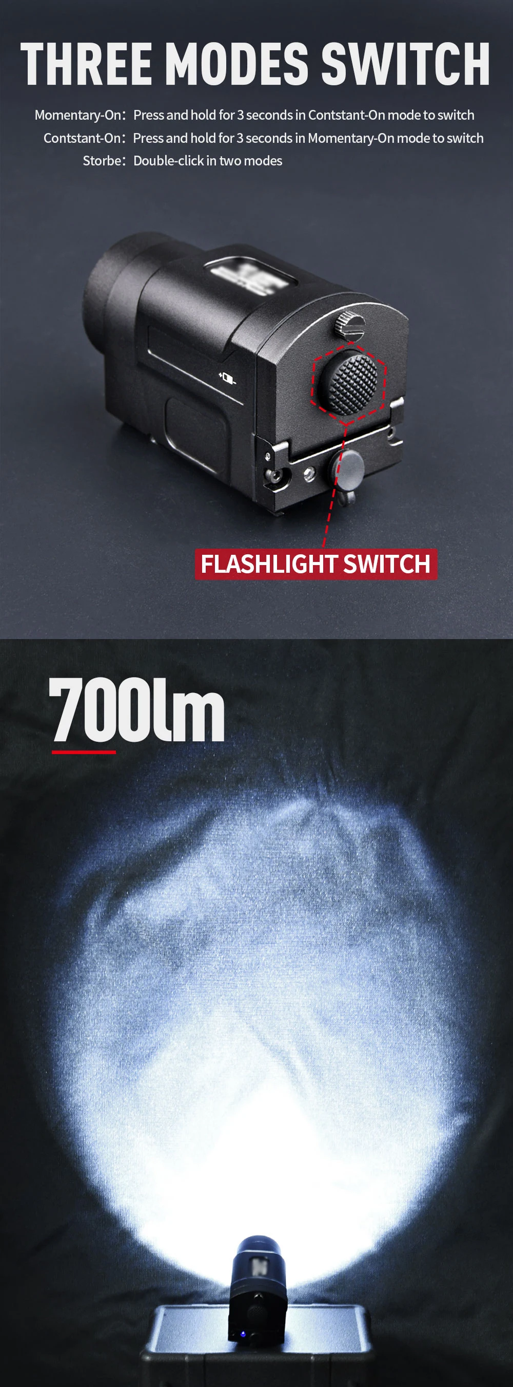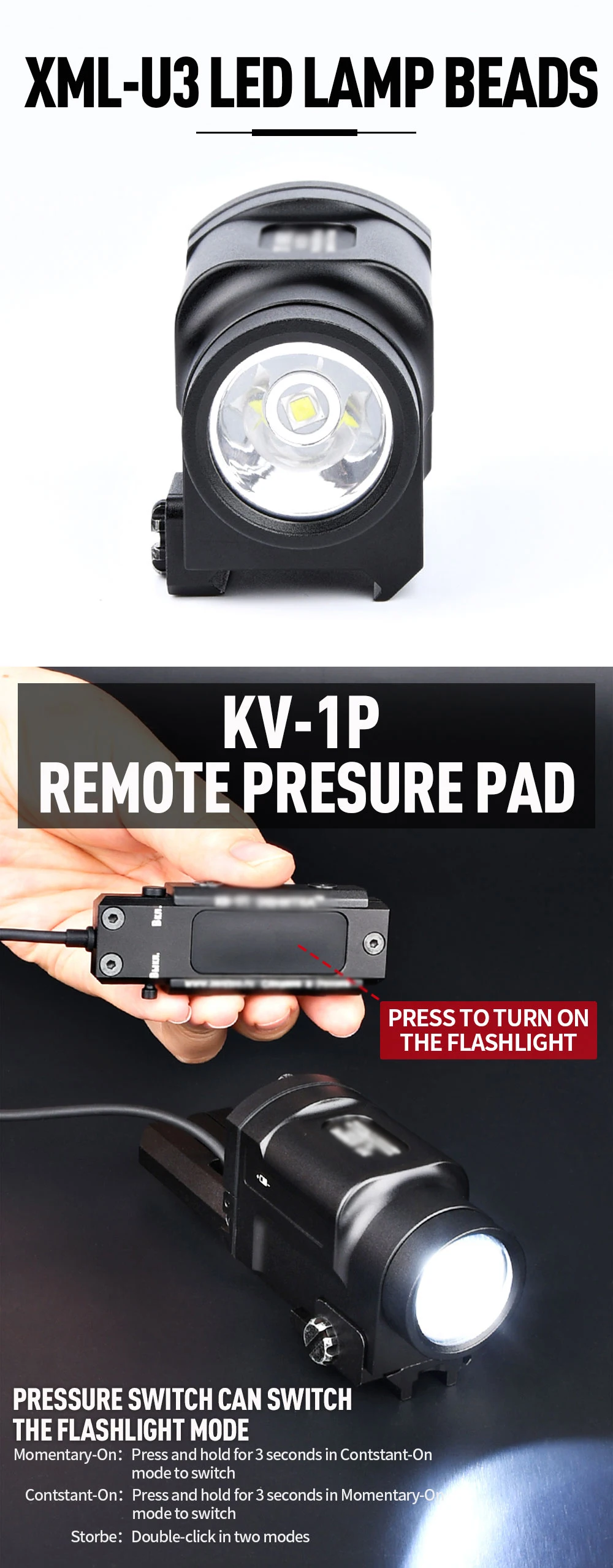 Zenitco táctico KLESCH-2P 2U K1 K1S LED estroboscópico arma linterna pistola luz para Rifle Airsoft pistola Glock 17 20mm carril caza