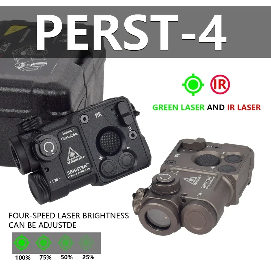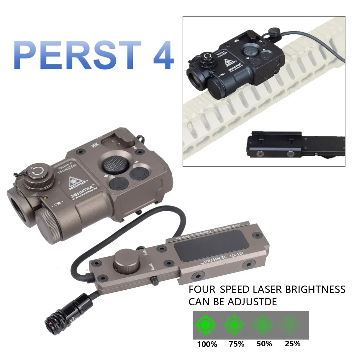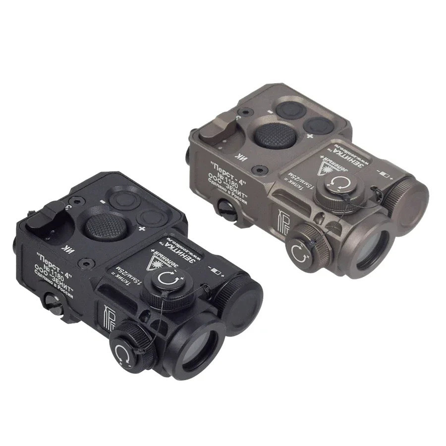 Perst-4 se utiliza para señalar objetivos al observar, inspeccionar y observar armas pequeñas disparando por la noche.Este producto es un pequeño dispositivo mecánico óptico que forma un flujo de radiación láser.Este producto se instala en rieles Picatinny.El interruptor táctico KV-D2 (en el kit) se puede instalar en rieles Picatinny y rieles 1913.Perst-4 contiene 2 funciones láser: