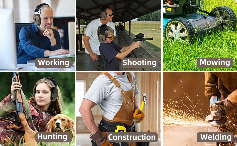 Cuando el ruido circundante supera los 82 dB, activa la reducción de ruido en 0,01 segundo.La orejera electrónica para tiro está equipada con 2 micrófonos omnidireccionales, que pueden amplificar los sonidos sutiles circundantes.Es un audífono de buen sonido para los entusiastas de la caza y el tiro con pérdida auditiva, y puede evitar la vergüenza de coronar el campo de tiro mientras usan tapones para los oídos.