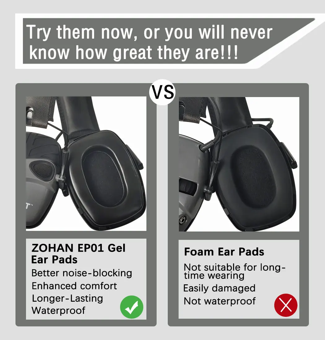 ZOHAN-almohadillas de Gel de repuesto para auriculares, almohadillas duraderas para auriculares, orejera de tiro electrónico, almohadillas de auriculares de alta proteína