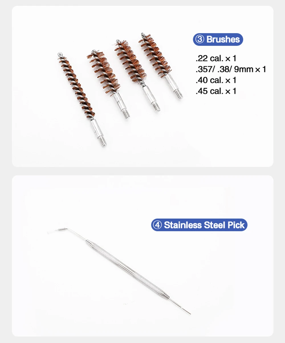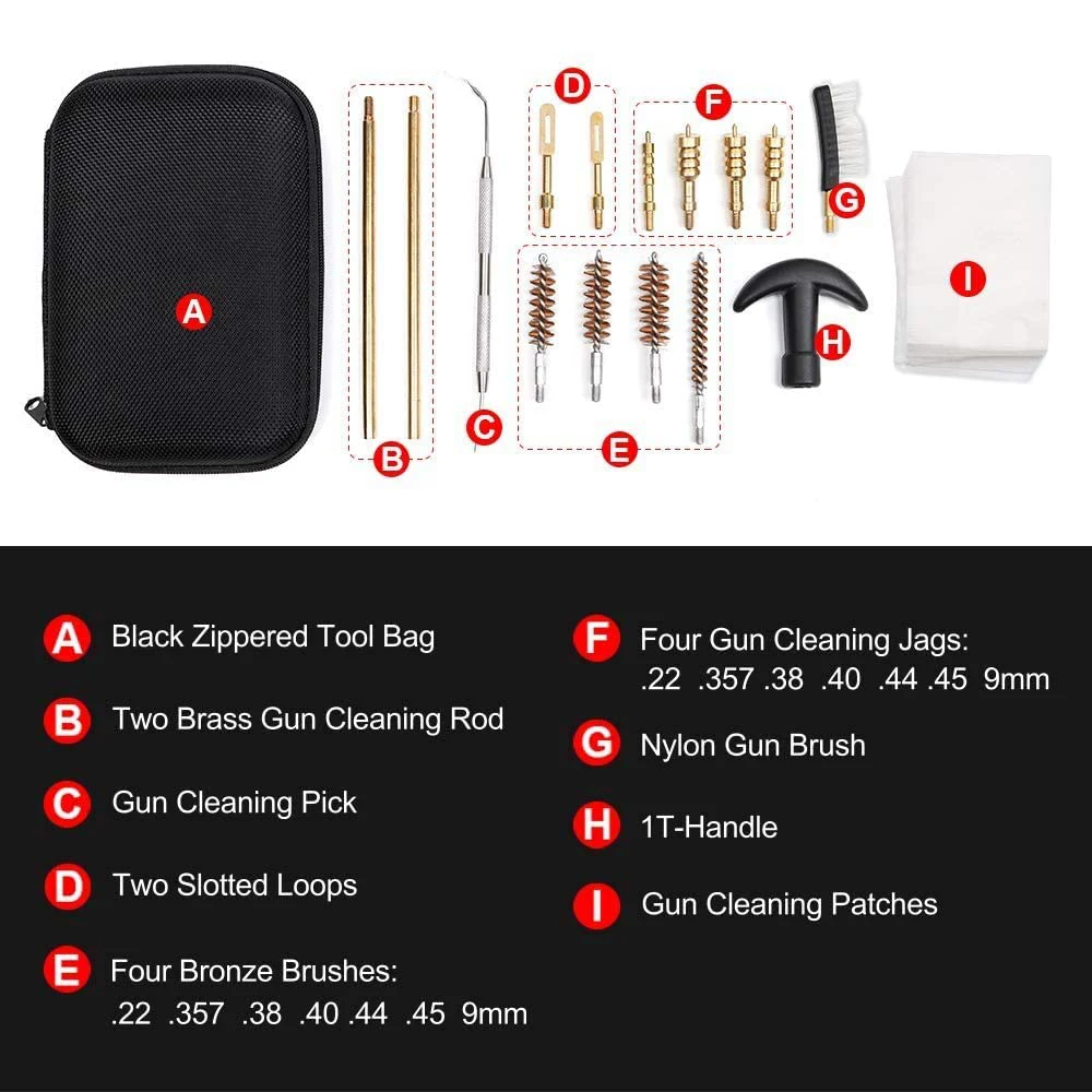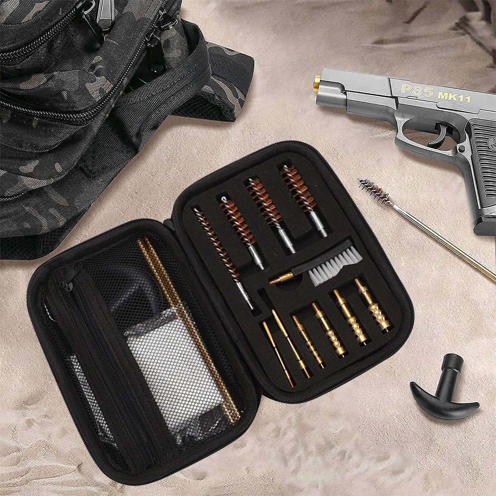 ZOHAN-Kit de limpieza de pistola Universal, 16 Uds., cepillos de barril, herramientas que se adaptan a la mayoría de calibres, pistolas 22 357 38 9mm 40 44 45, accesorios para pistola