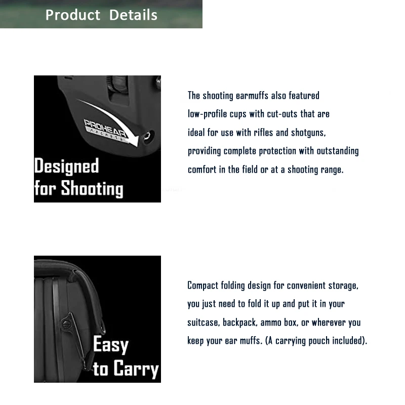 AMPLIA APLICACIÓN: Diseño plegable compacto para fácil transporte.Recomendado para tiro de tiro, caza, carpintería, corte de césped, motosierras y cualquier entorno ruidoso.(ATENCIÓN: alimentado por 2 pilas AAA, NO INCLUIDAS)
