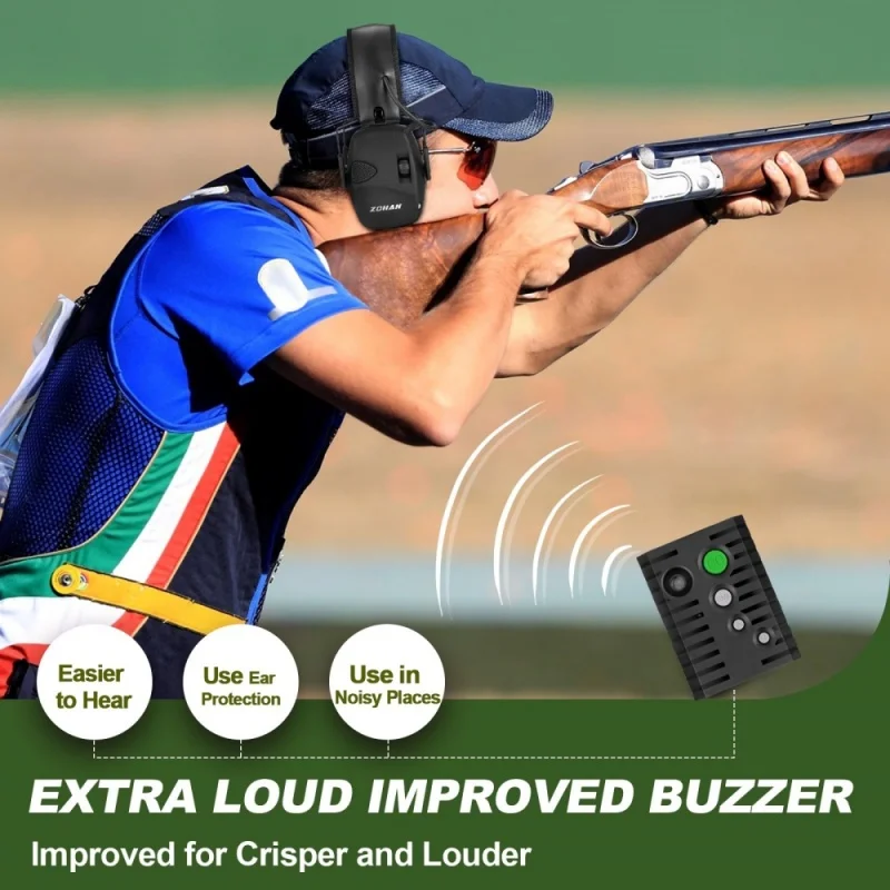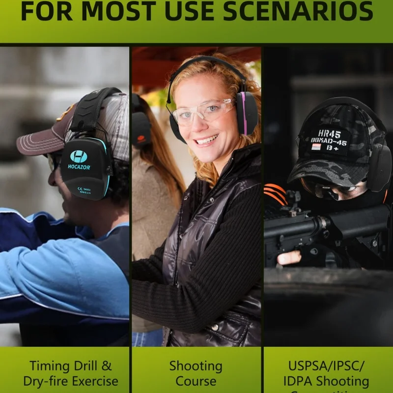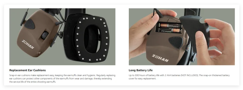 Sensitive Active Earmuffs: Noise reduction rating is 22 dB. It provides active noise reduction effectively.When the surrounding noise exceeds 82dB,it will actively reduce the noise within 0.01 seconds.Powered by 2 AAA batteries, approximately 350 hours of battery life, so you can focus on the game without worrying about power issues.