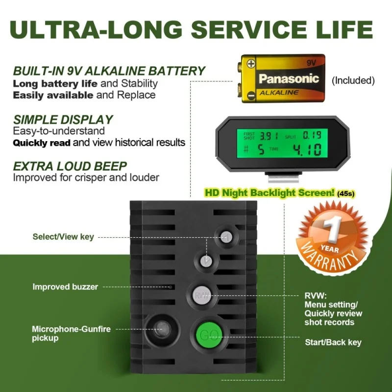 Designed for Hunting and Shooting: With high precision and stability, durable in all weather conditions. The volume control buttons are designed vertically. The large and flexible buttons can be easily touched. Emphasizes ergonomic design, allowing you to feel comfortable and stable during use. Whether it is long-term hunting or shooting competitions, it can ensure that users maintain good condition during use.