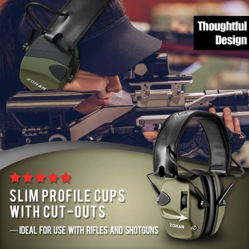 Reducción de ruido: nuestra protección auditiva para disparar logra una reducción activa de ruido mediante el procesamiento de chips.Las orejeras para disparar tienen dos micrófonos de alta ganancia que captan activamente el sonido y reducirán activamente el ruido en 0,01 segundos cuando el ruido ambiental supera los 82 dB.NRR: 22 dB