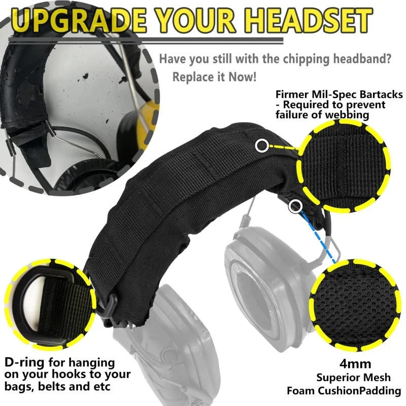 Fuerte y resistente: el trabajo con aguja apretada hace que las chinchetas Mil-spec sean más firmes y duraderas.Mejora y decora mejor tus orejeras.Mejora la comodidad y al mismo tiempo fortalece tu diadema.