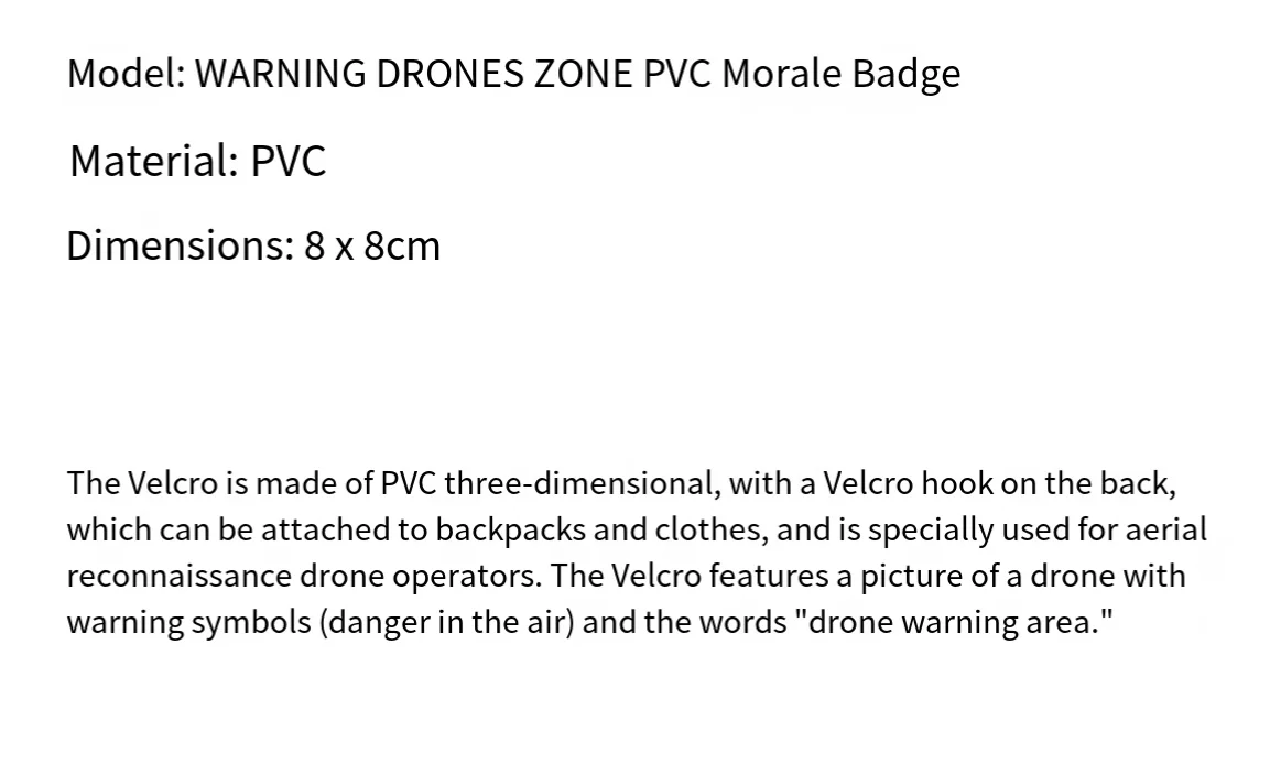 Zona de drones de advertencia, capítulo táctico, zona de drones, pegatina de brazo mágico de Pvc