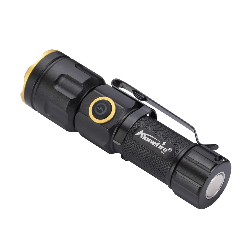 Por ese dinero (5 euros), obtienes una linterna pequeña muy buena, pero no de 1000 lúmenes. Si quieres una lámpara muy brillante, deberías comprar la Alonefire X24 que cuesta alrededor de 8 euros. Aún no he comprobado la distancia de alcance, pero vi el video de reseña que muestra que es bastante lejos. No veo mucha diferencia entre el x67 y el x77, excepto en la apariencia. Debes hacer clic dos veces rápidamente seguidas para obtener la configuración más brillante.