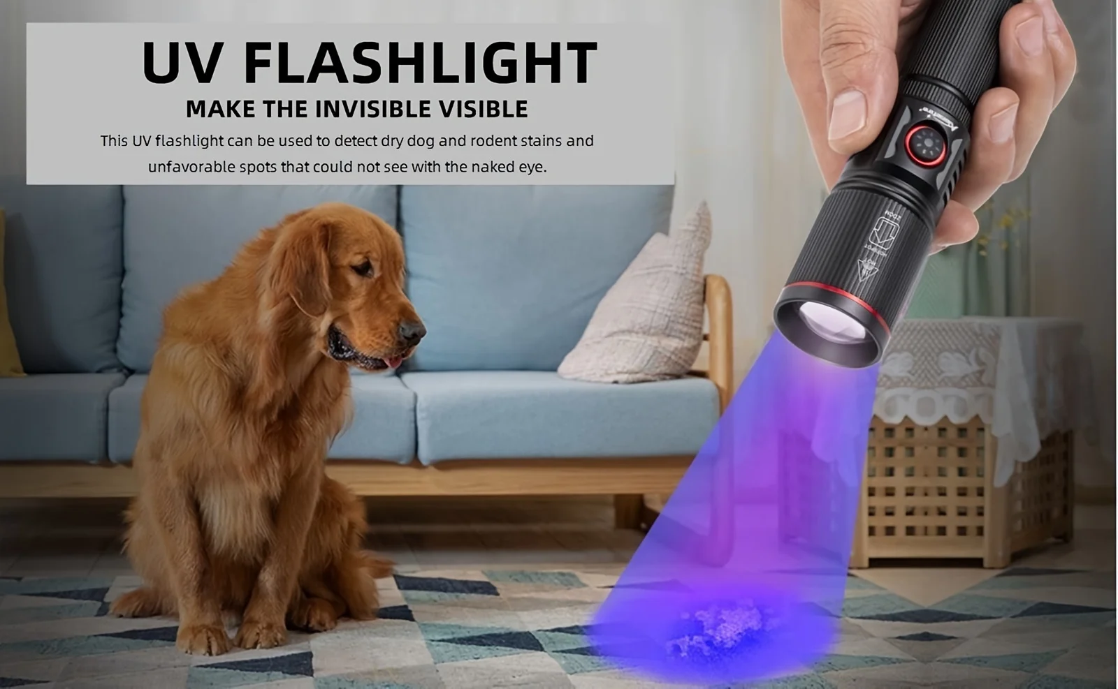 La luz ultravioleta de 365 nm es invisible a simple vista, por lo que no es tan BRILLANTE como la linterna de 395 nm, sino más perfecta para detectar una alta demanda como agentes fluorescentes y códigos de seguridad.UV de 365 nm es el espectro de detección realmente dedicado.Se puede utilizar con luz natural y funciona mejor en la oscuridad con poca fuga de luz visible.Se puede utilizar como detector de orina para mascotas (perros/gato)/escorpión/buscador/fluorescente/detector/moneda/licencia/tarjeta/